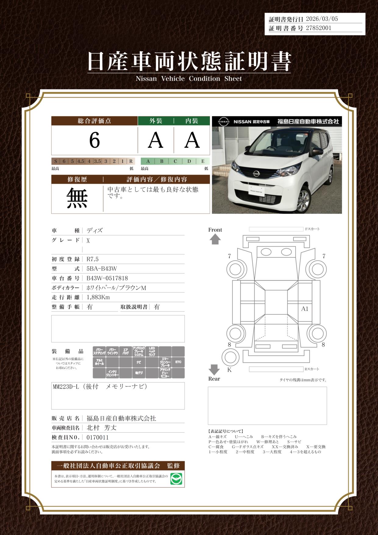 「車両状態証明書」は、査定協会監修のプロの検査員が公正かつ確かな基準で検査した”安心の証”です。