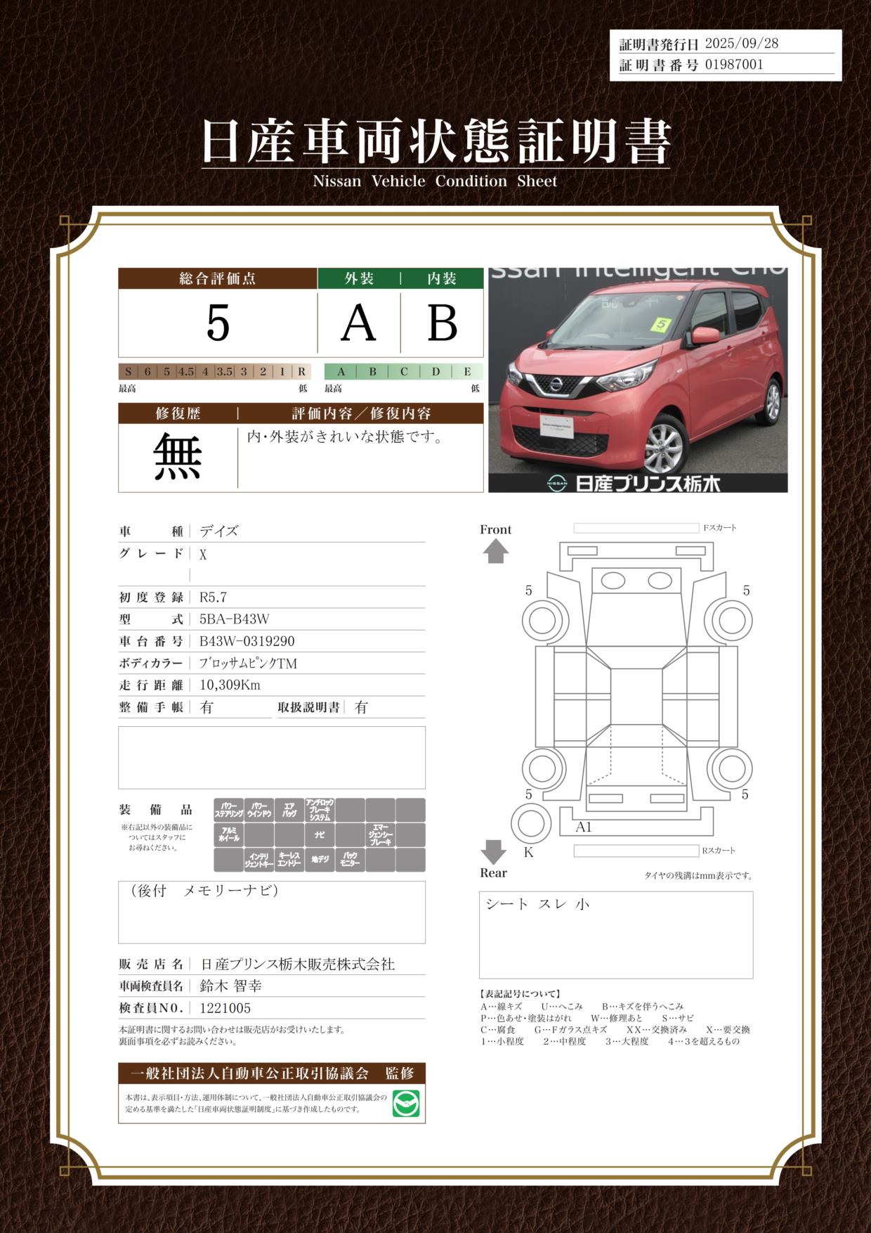 デイズ 660cc 660 X アラウンドビューモニター オートライト