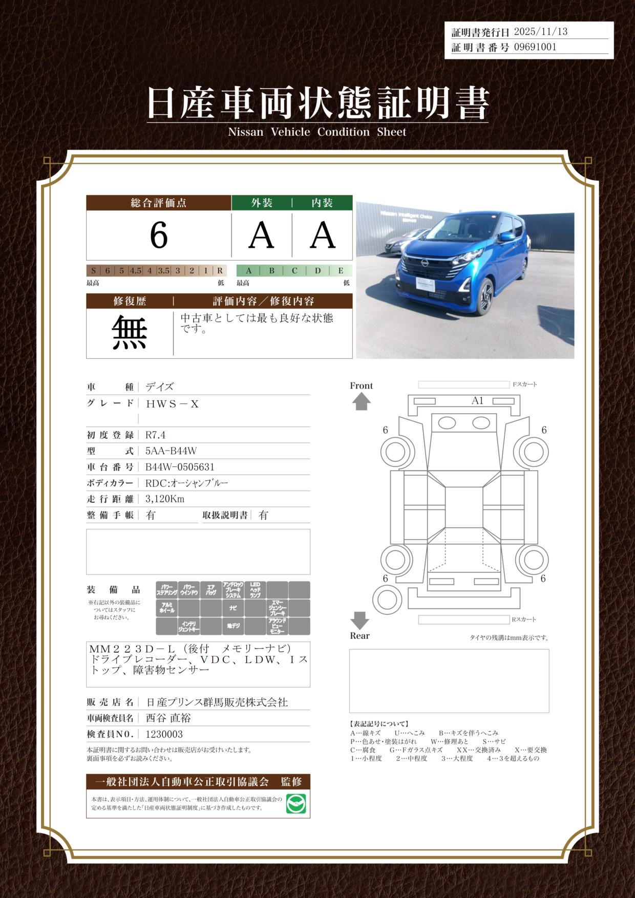 購入から3か月間、走行距離無制限で保証。