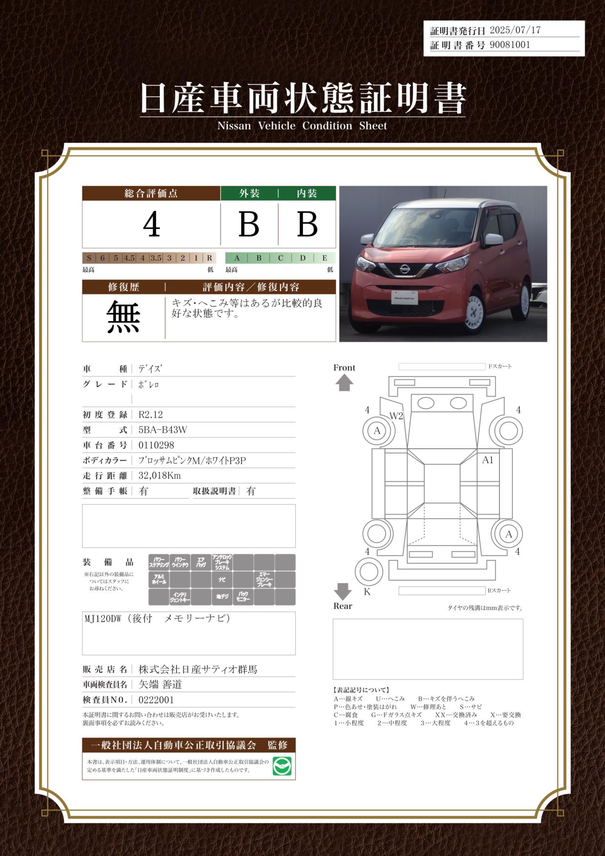 デイズ 660cc 660 ボレロ MJ120D-W バックカメラ