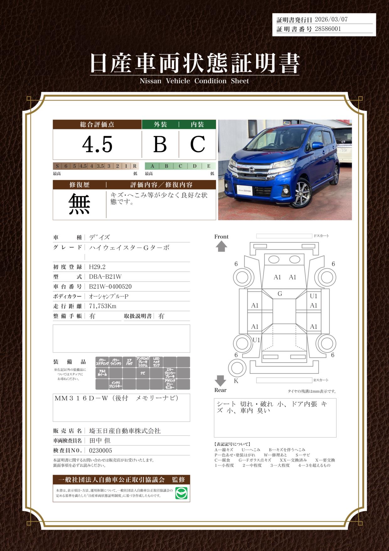厳しい審査をクリアした日産プレミアム認定中古車を多数展示中です!全車、全国の日産ディーラーで対応出来る日産ワイド保証付きなので安心です♪今注目の日産の軽自動車★デイズ&ルークスの当社社用車アップ!低燃費で軽快な走り☆ノートの社用車アップ!ミニバンNo1セレナの試乗車アップ入荷中!当店スタッフがイチ押しの特選車もご用意しております★只今『埼玉日産☆大決算フェア』開催中!記念品のご用意もございますのでぜひご来店ください!お待ちしてます(^^)/【3月定休日】3・4・10・11・17・18・24・25・31日