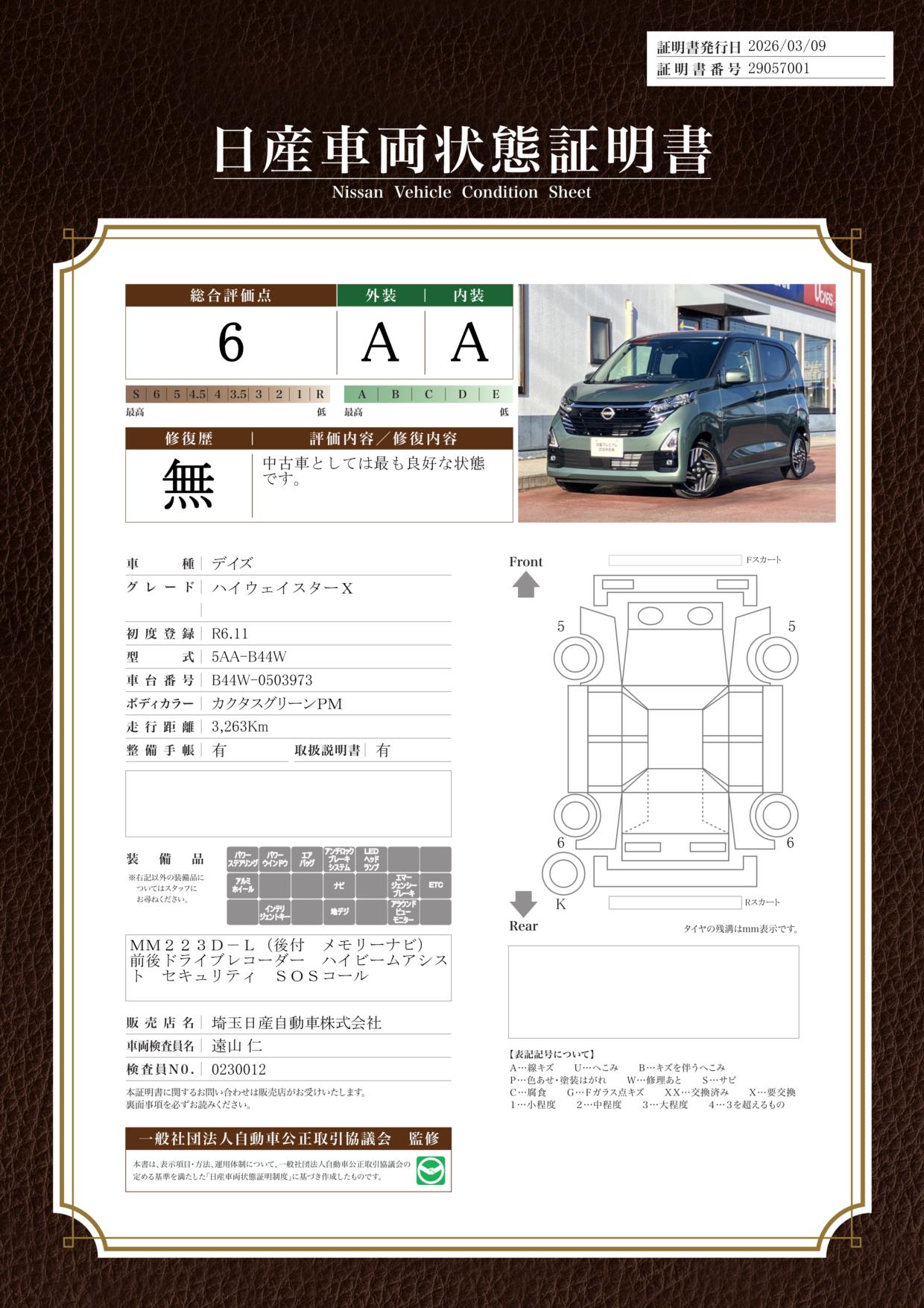 「車両状態証明書」は、査定協会監修のプロの検査員が公正かつ確かな基準で検査した”安心の証”です。