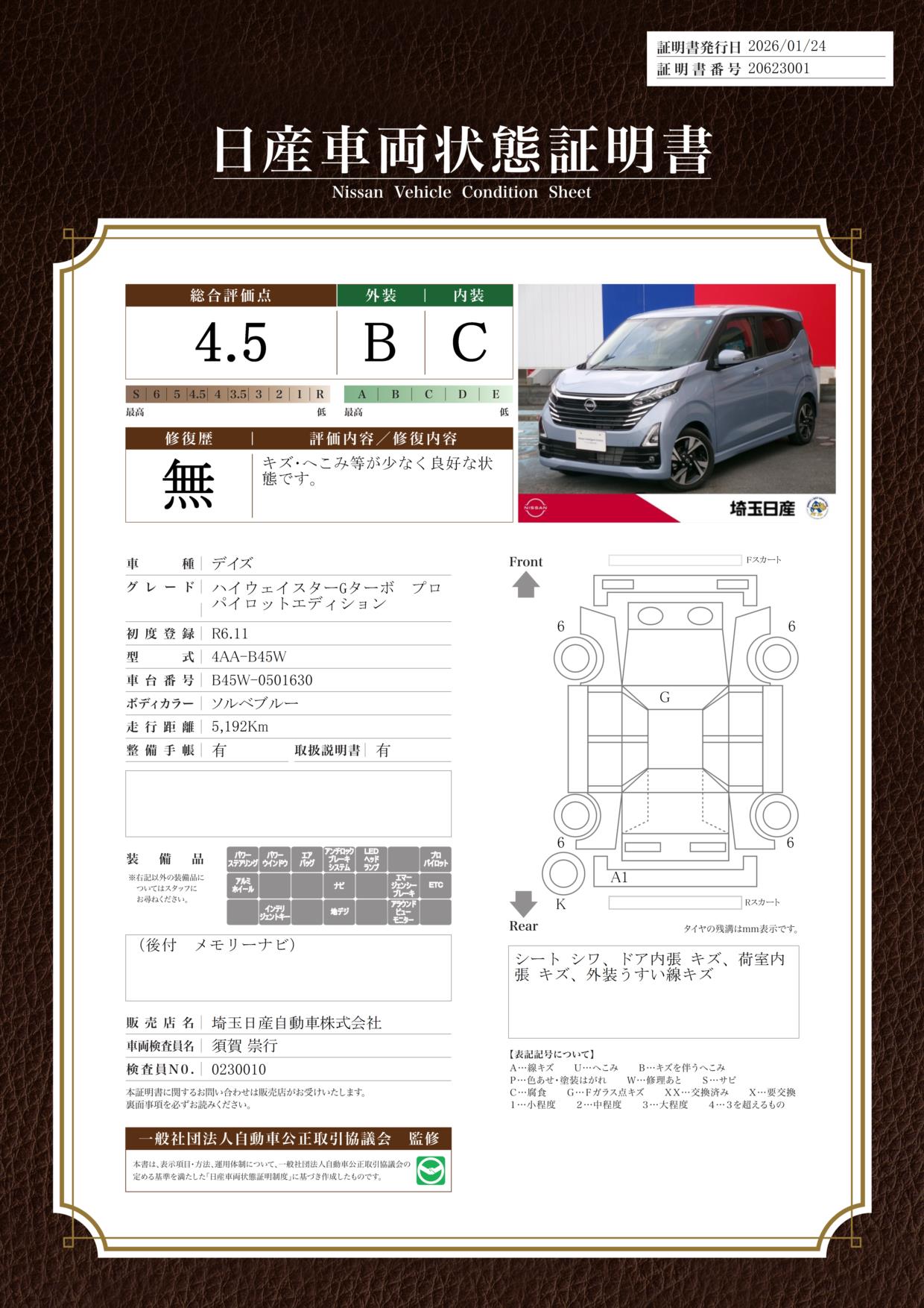 現状括弧書き内の年月まで車検有効期限が残っていますが、ご成約時に新しく車検を取り直します。なお取り直しの費用は車両価格に含まれています。
