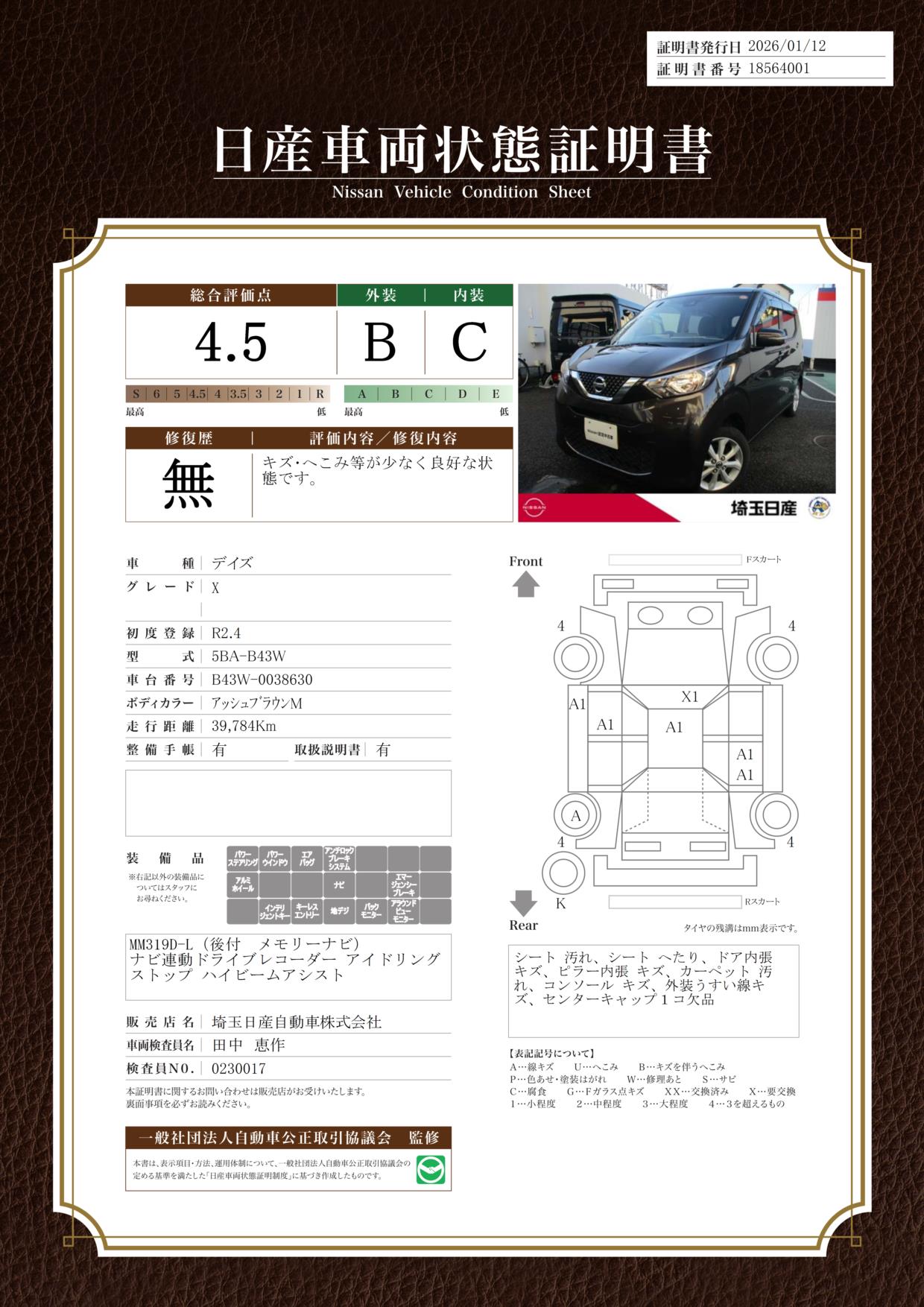 現状車検切れの状態ですが、ご成約時に新しく車検を実施します。車検費用は車両価格に含まれています。