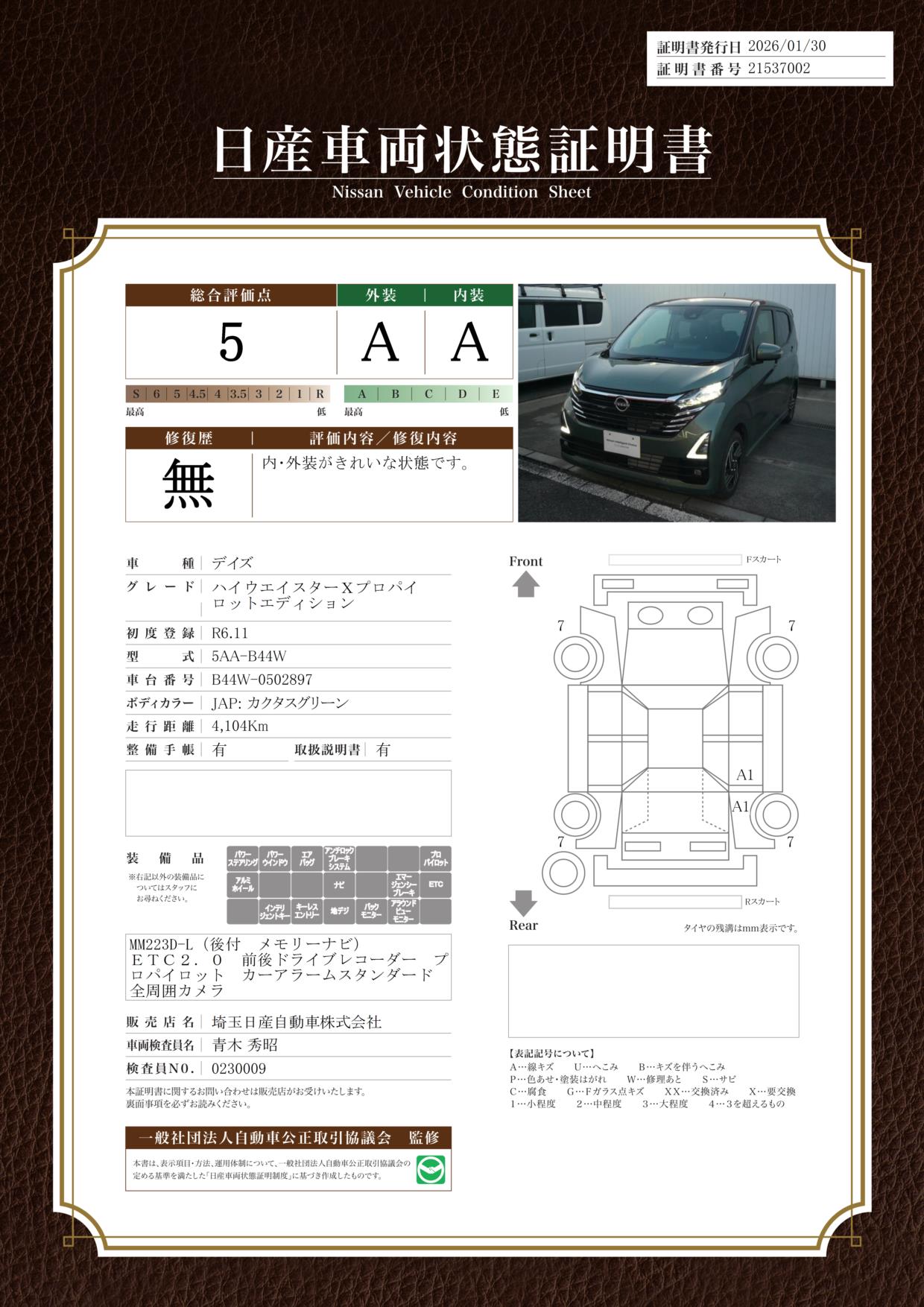 現状括弧書き内の年月まで車検有効期限が残っていますが、ご成約時に新しく車検を取り直します。なお取り直しの費用は車両価格に含まれています。