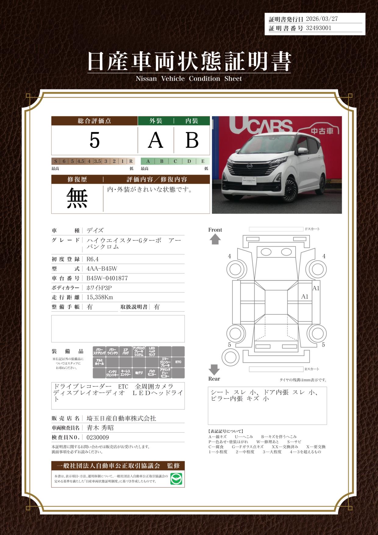 「車両状態証明書」は、査定協会監修のプロの検査員が公正かつ確かな基準で検査した”安心の証”です。