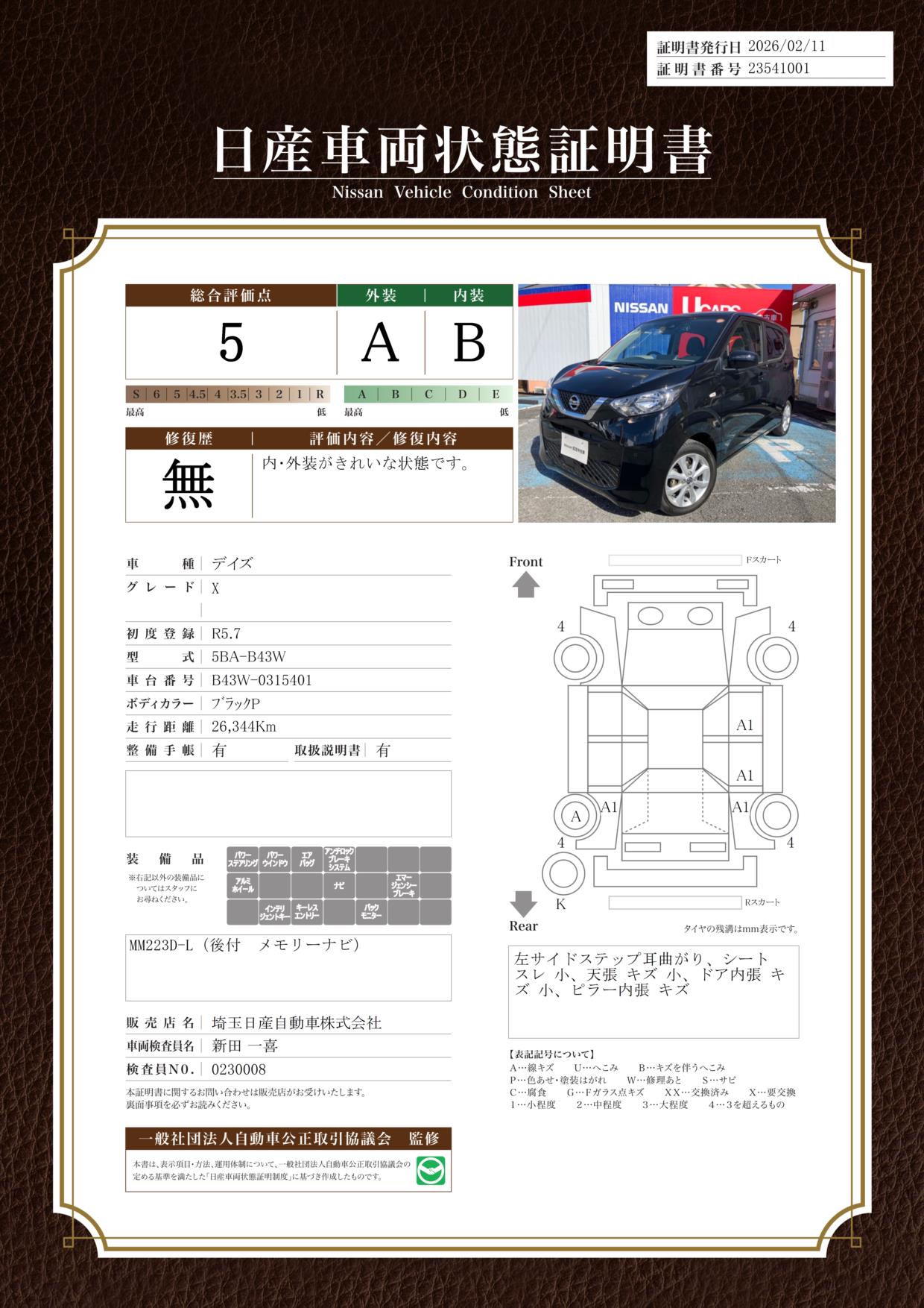 現状括弧書き内の年月まで車検有効期限が残っていますが、ご成約時に新しく車検を取り直します。なお取り直しの費用は車両価格に含まれています。