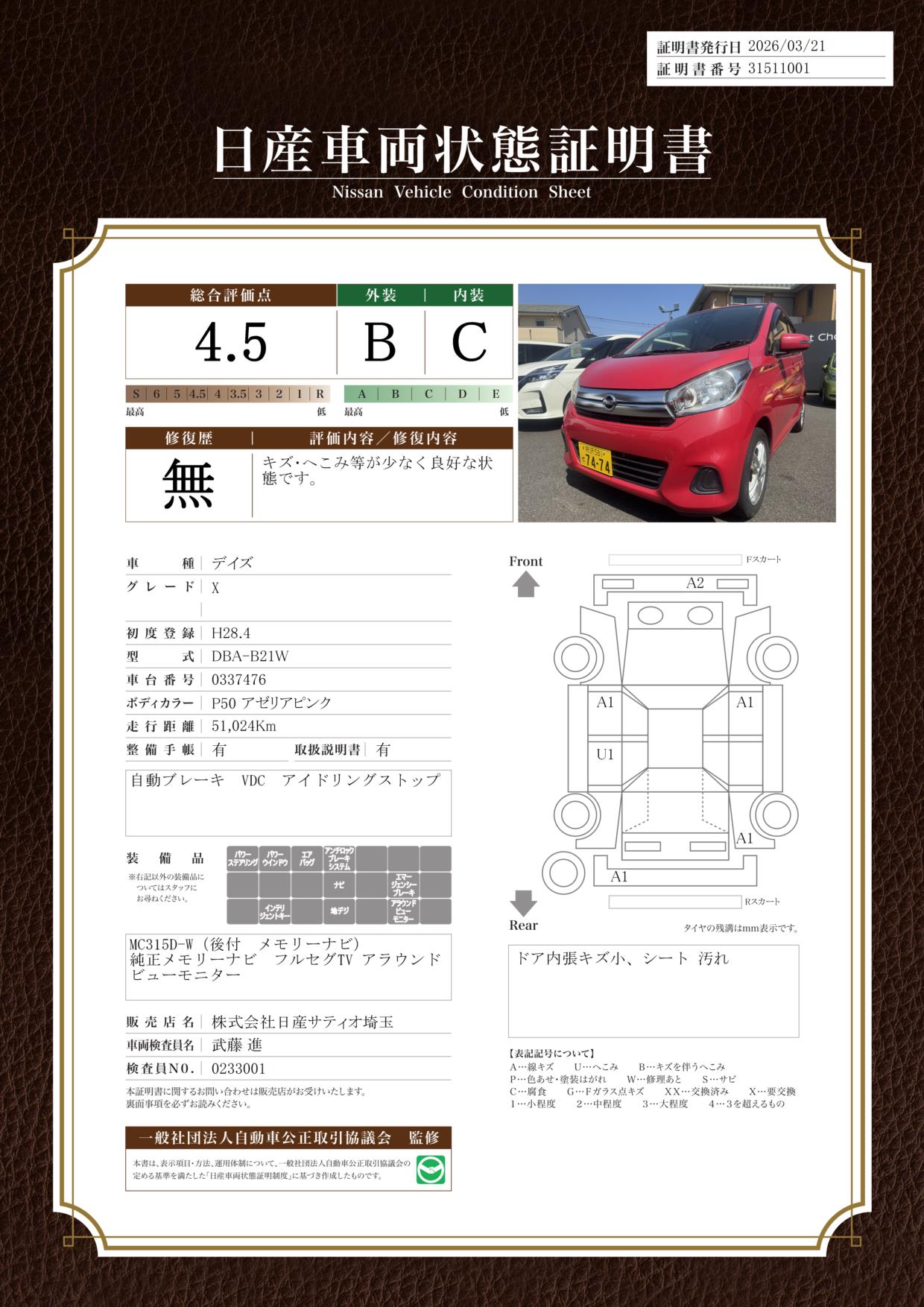 日産自動車認定の中古車販売店です。