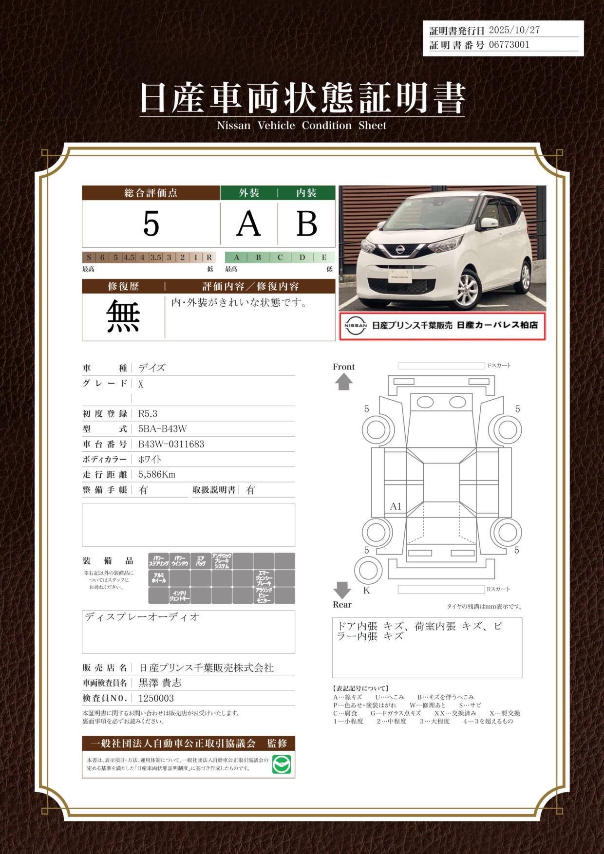 現状括弧書き内の年月まで車検有効期限が残っていますが、ご成約時に新しく車検を取り直します。なお取り直しの費用は車両価格に含まれています。