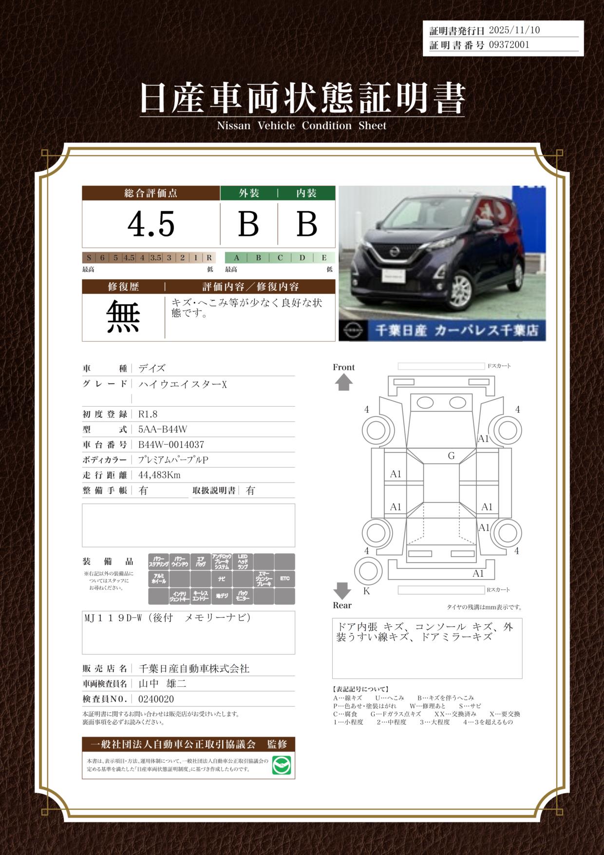 デイズ 660cc 660 X 当社試乗車UP純正ナビアラウンドビューカメ
