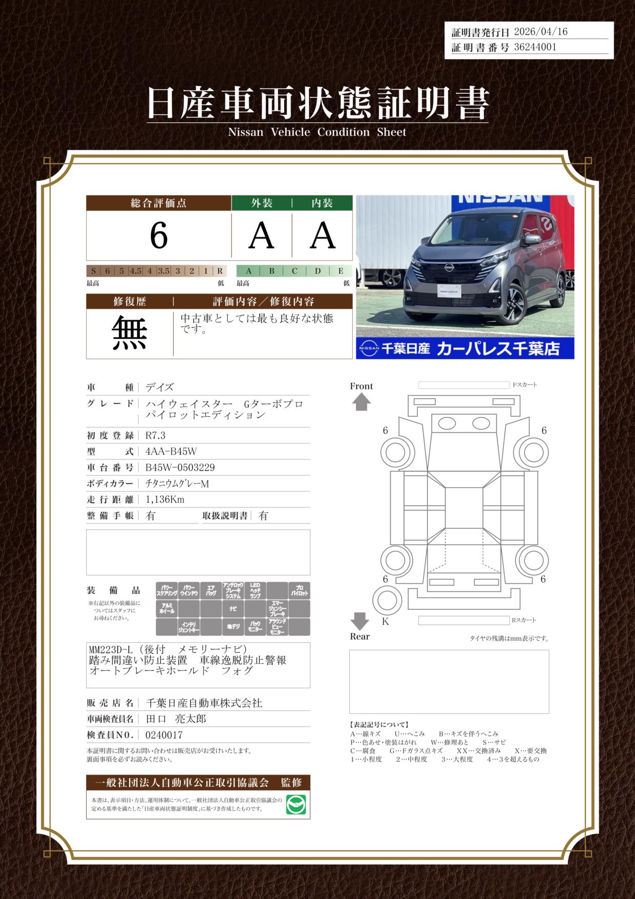 「車両状態証明書」は、査定協会監修のプロの検査員が公正かつ確かな基準で検査した”安心の証”です。