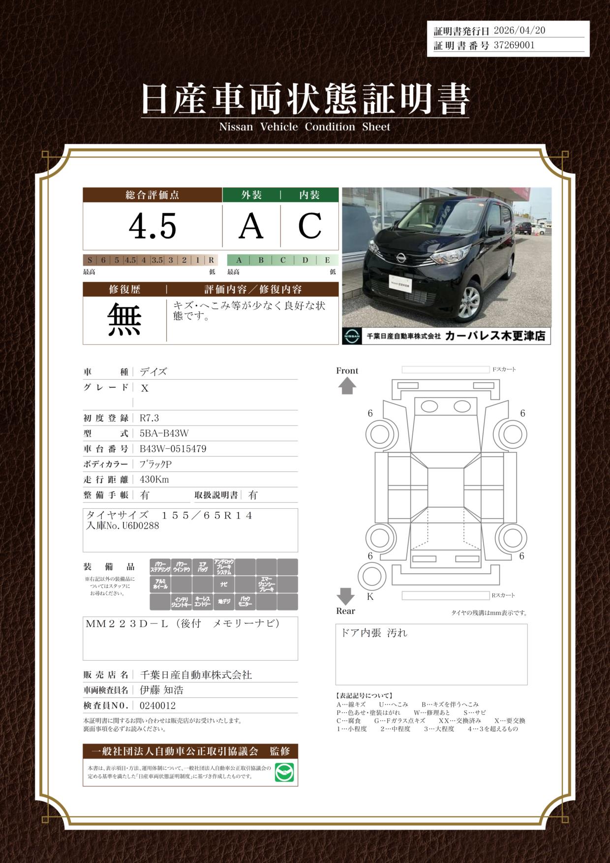 「車両状態証明書」は、査定協会監修のプロの検査員が公正かつ確かな基準で検査した”安心の証”です。