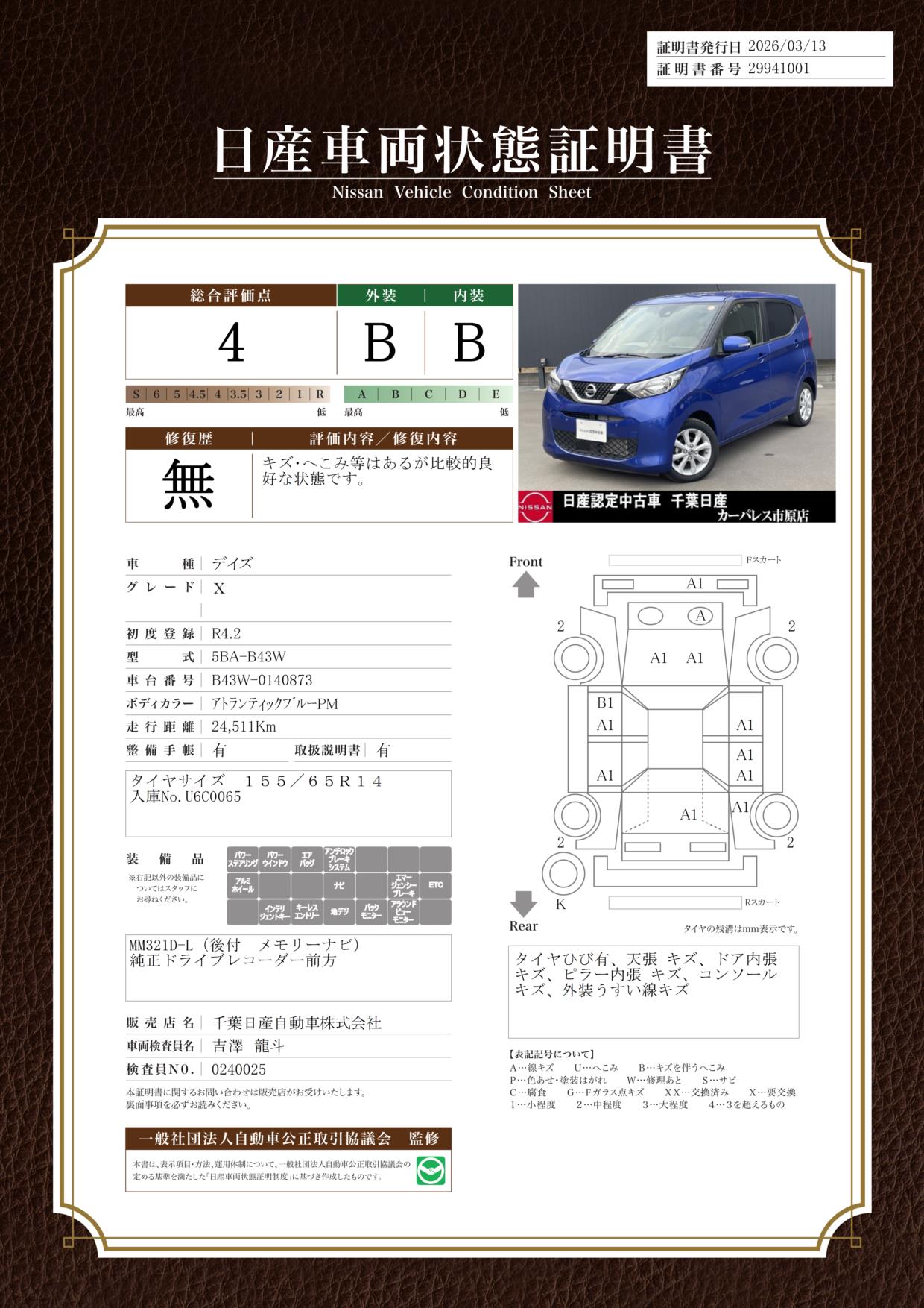 日産車両状態証明