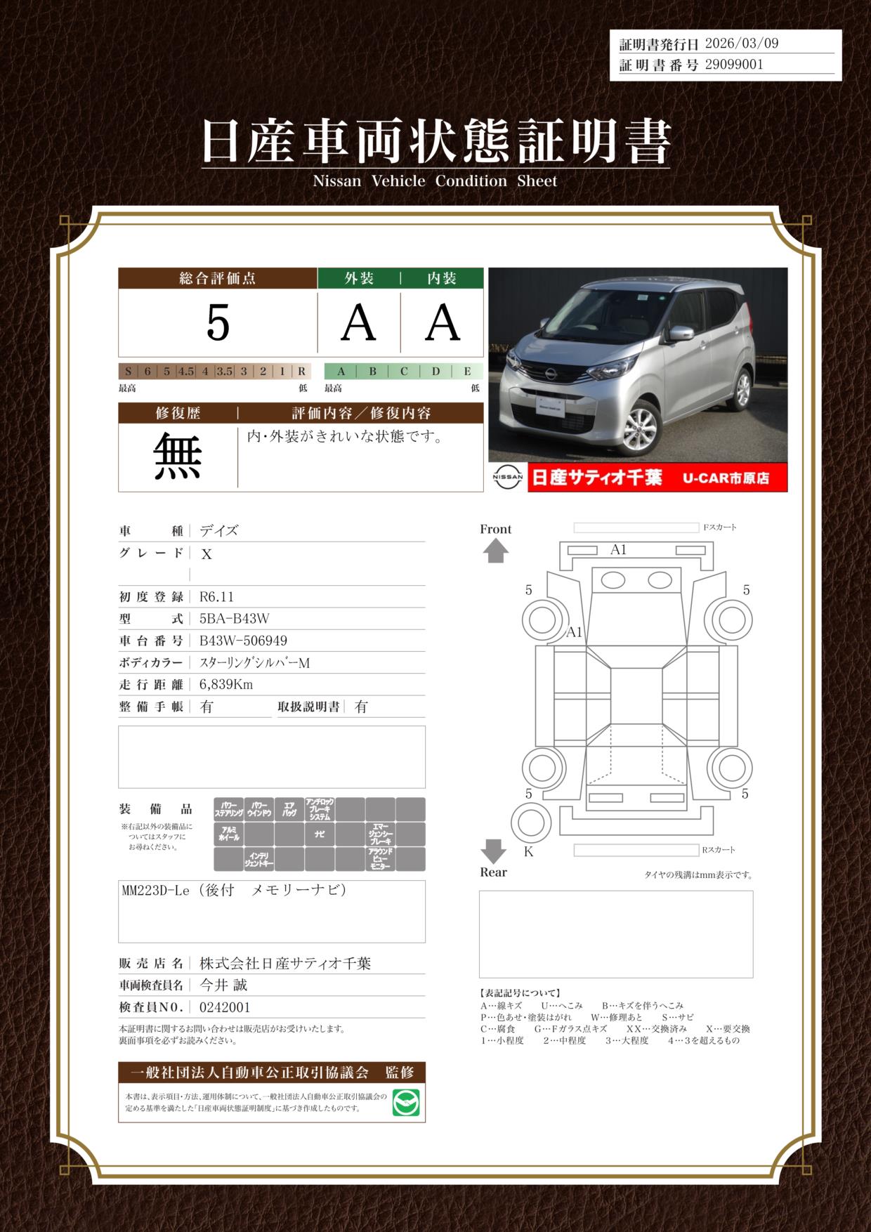 日産車両状態証明