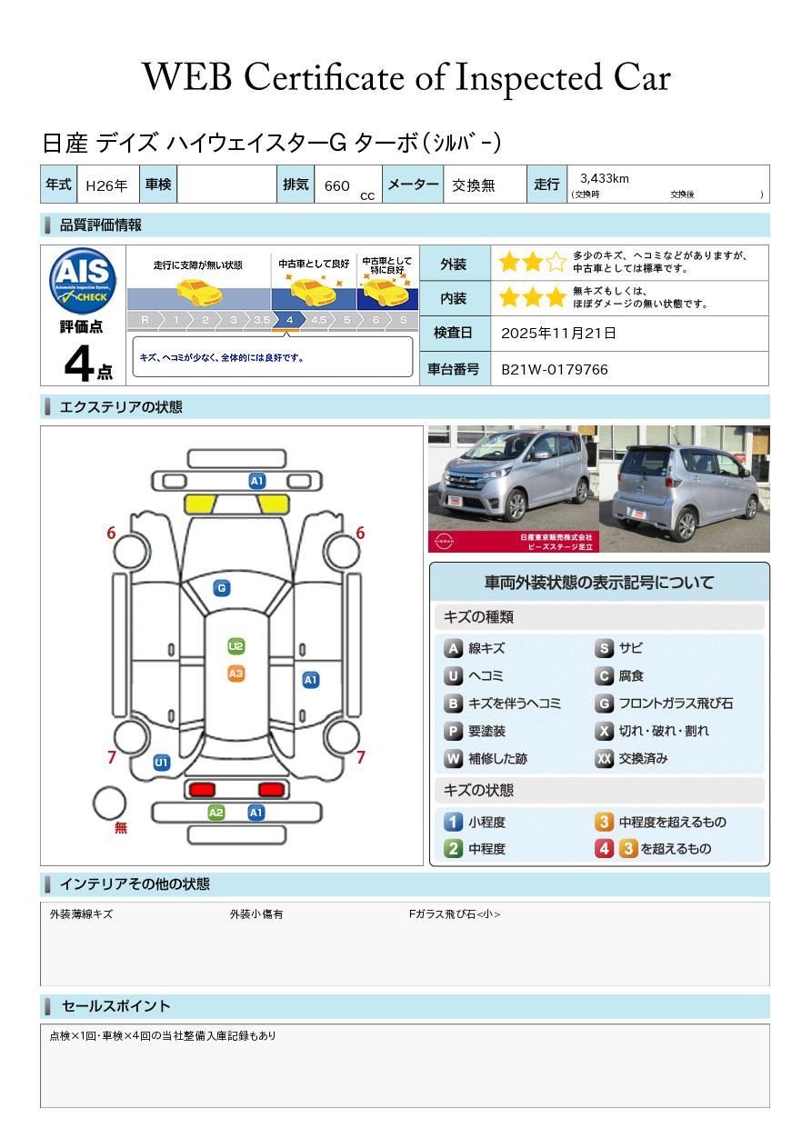 660 ハイウェイスターX ナビ連動純正ドライブレコーダー
