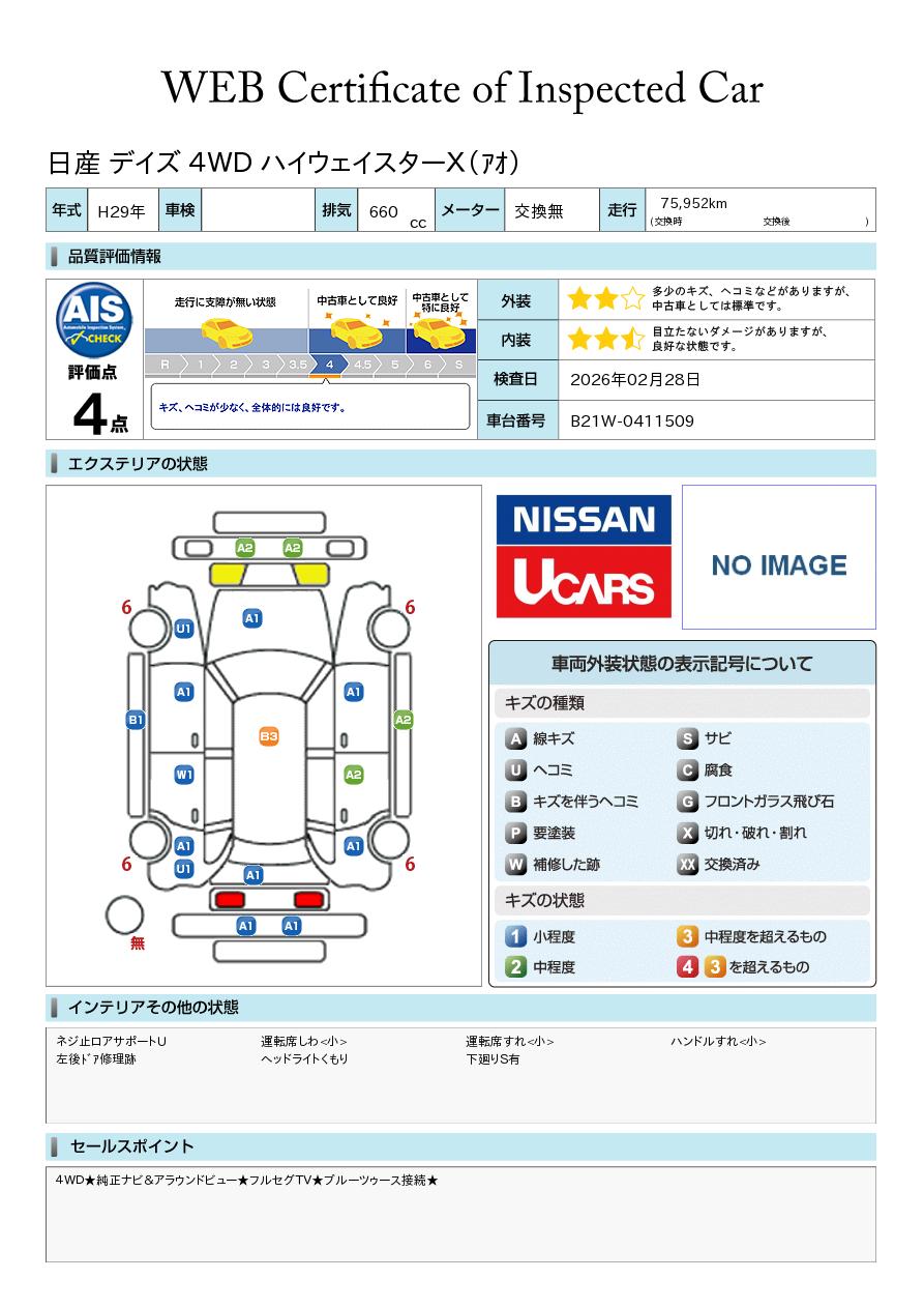 現状括弧書き内の年月まで車検有効期限が残っていますが、ご成約時に新しく車検を取り直します。なお取り直しの費用は車両価格に含まれています。