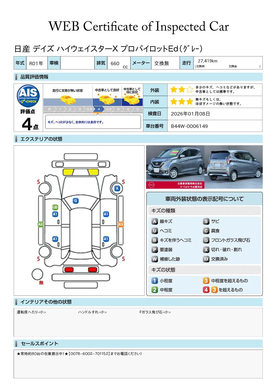 日産自動車認定の中古車販売店です。