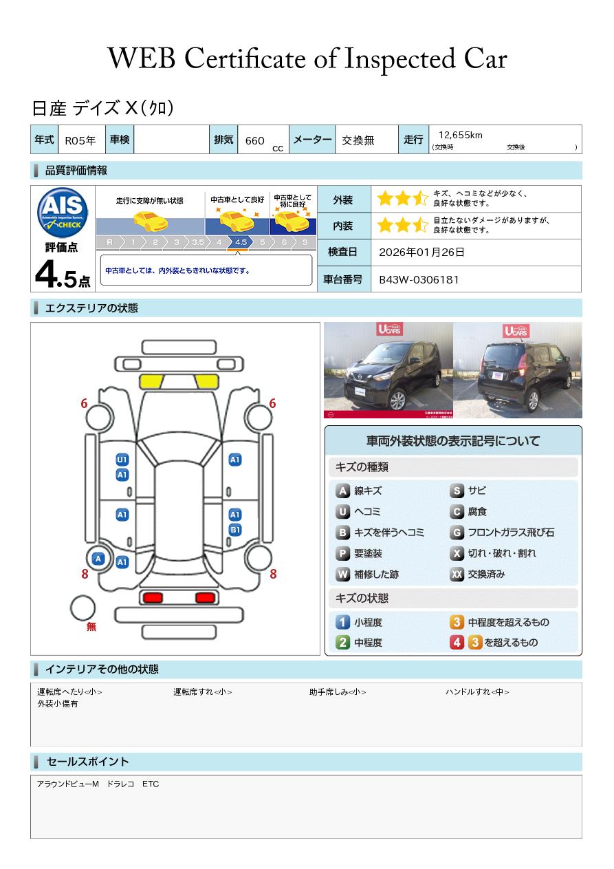 現状括弧書き内の年月まで車検有効期限が残っていますが、ご成約時に新しく車検を取り直します。なお取り直しの費用は車両価格に含まれています。