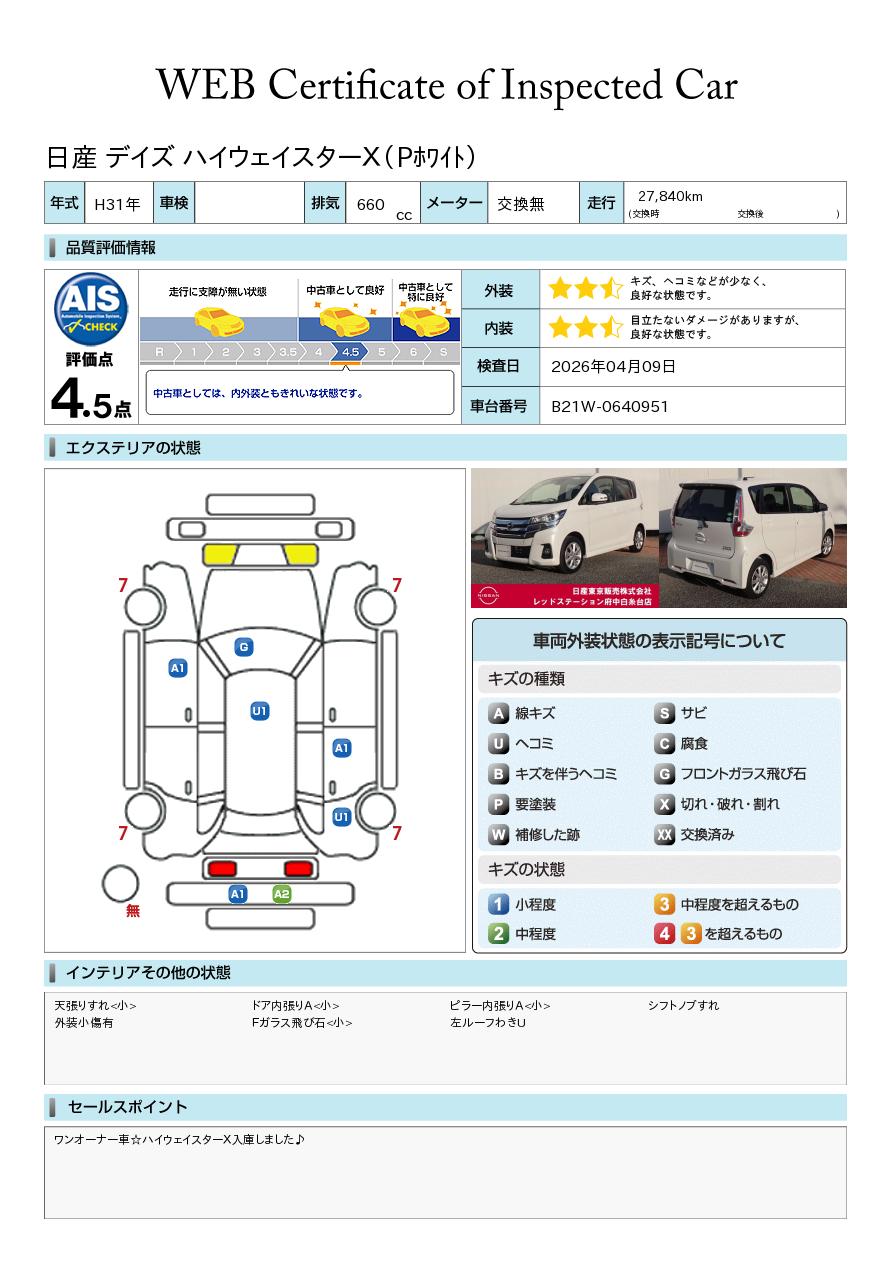 日産自動車認定の中古車販売店です。