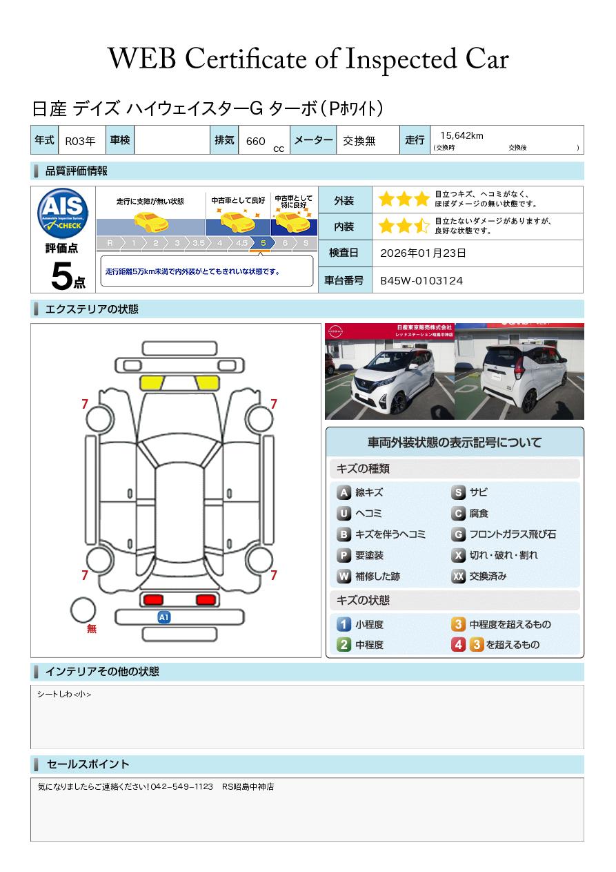 評価点イメージ : 走行距離5万kmまで内外装がとてもきれいな状態です。