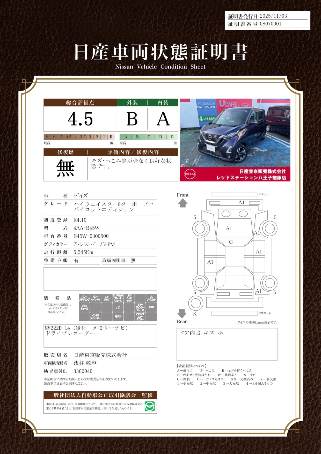 ◇◆歳末大感謝祭◆◇実施中! 在庫台数、正規ディーラー都内最大規模で素敵な一台をご案内させていただきます☆ 日産東京限定!クルマの費用を定額に中古車のサブスク☆込みッと定額☆ お電話や休暇中のメールお問い合わせもお待ちしております! 電車バスでお越しになる場合はJR中央線 西八王子駅北口1番乗り場楢原町行きバス終点の楢原町から徒歩5分! ※定休日※ 12/2(火).9(火).16(火).23(火).28(日)~1/3(土)