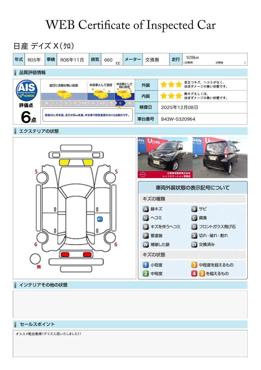 デイズ 660cc 660 X 当社試乗展示車 純正大画面メモリーナビ