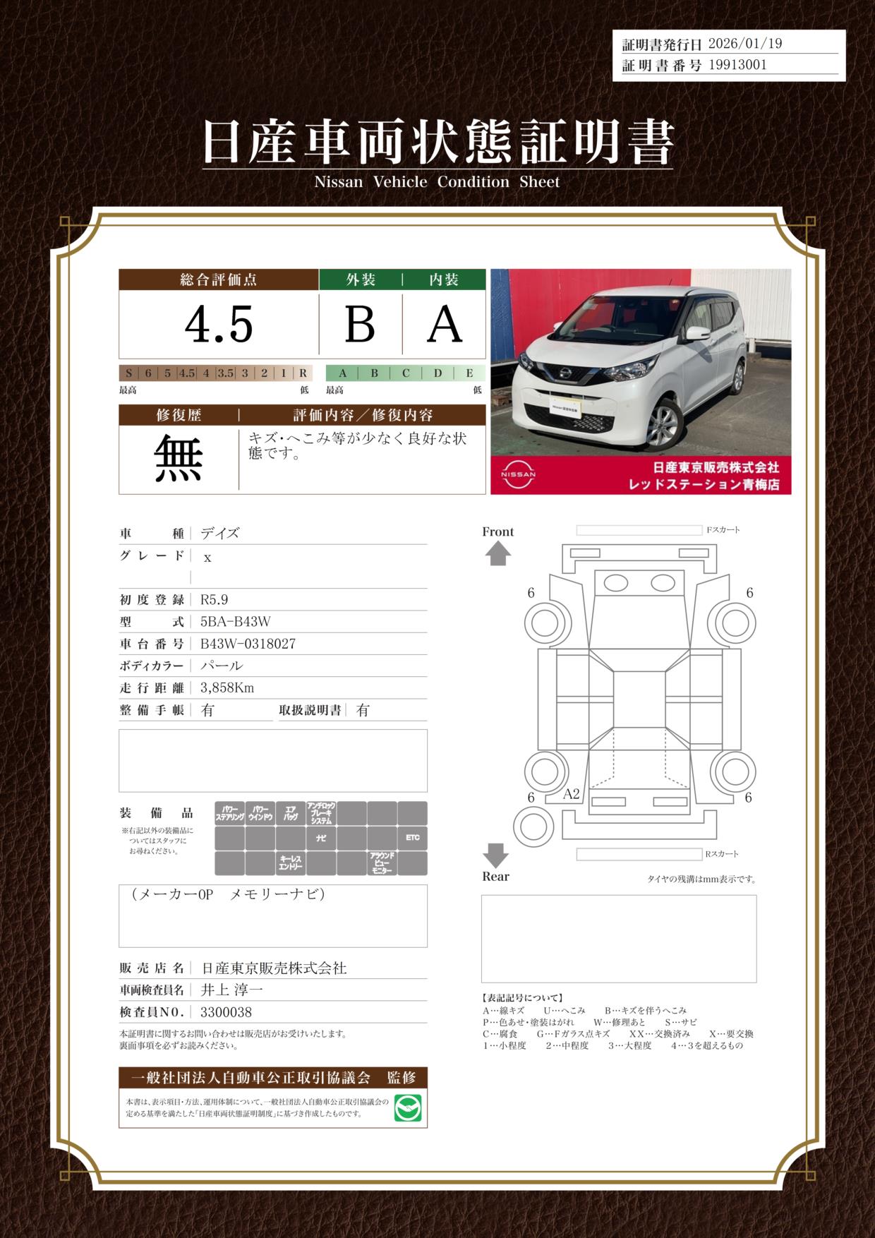 デイズ 660cc 660 X 当社試乗展示車 純正大画面メモリーナビ