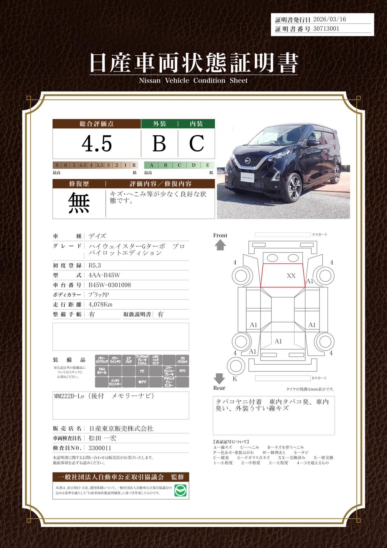 「車両状態証明書」は、査定協会監修のプロの検査員が公正かつ確かな基準で検査した”安心の証”です。
