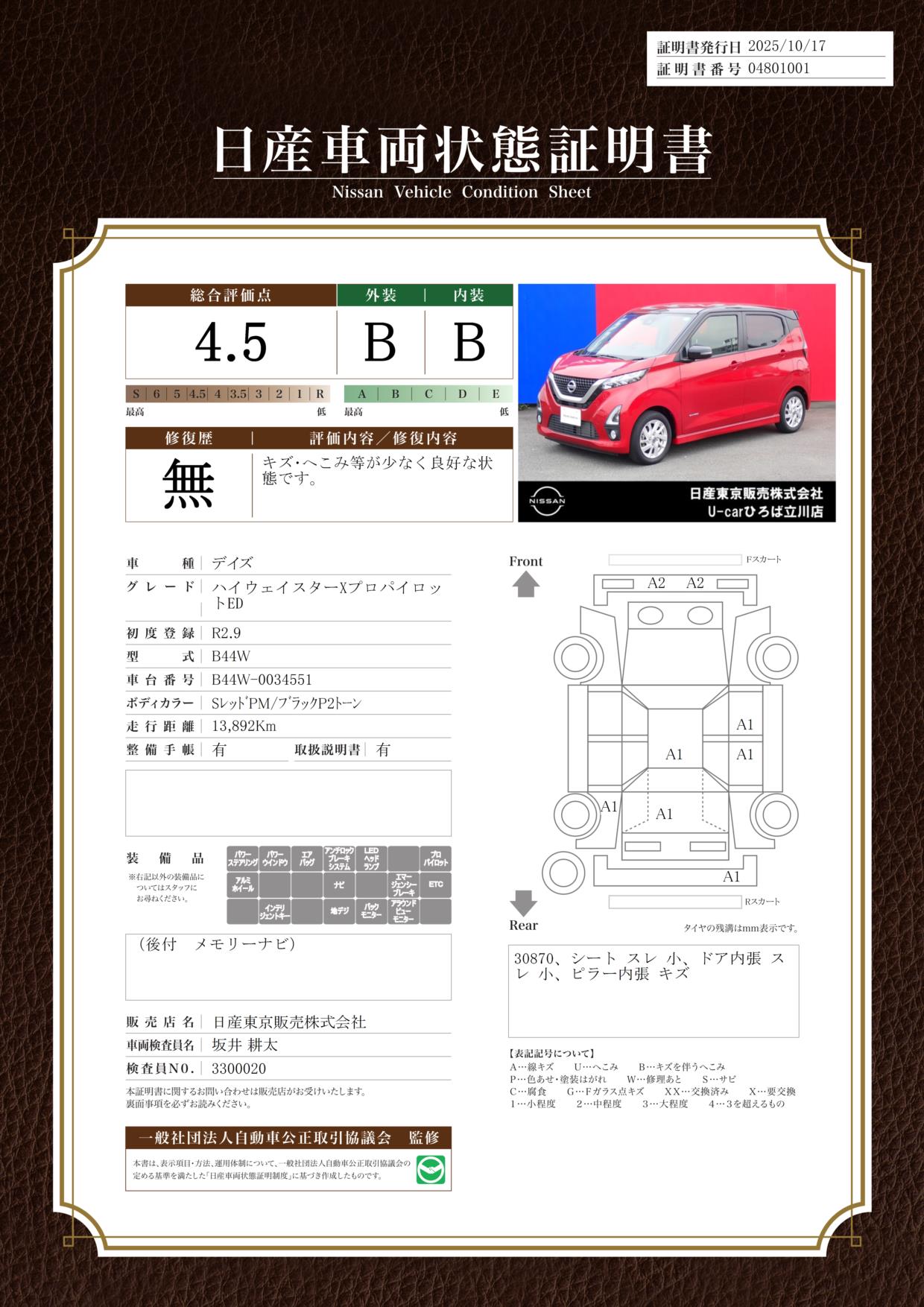 デイズ 660cc 660 ハイウェイスターX プロパイロット エディション 試乗車 純正メモリーナビ SOSコール