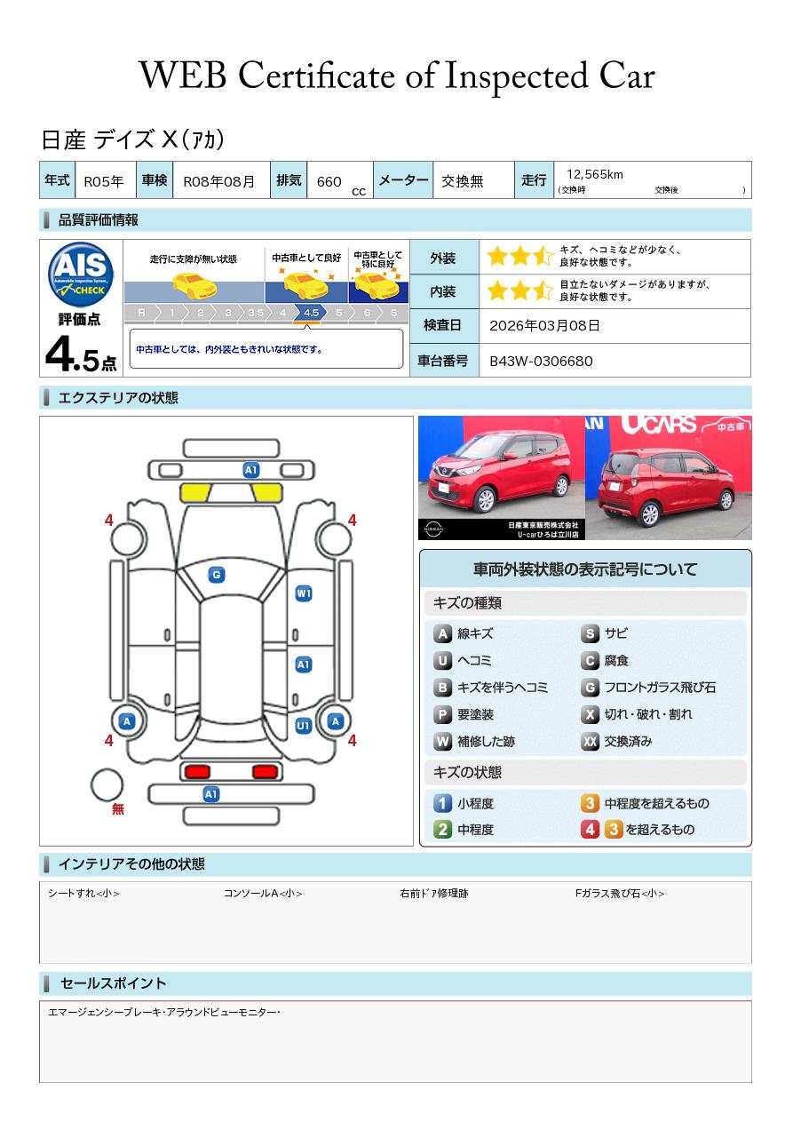 「車両状態証明書」は、査定協会監修のプロの検査員が公正かつ確かな基準で検査した”安心の証”です。