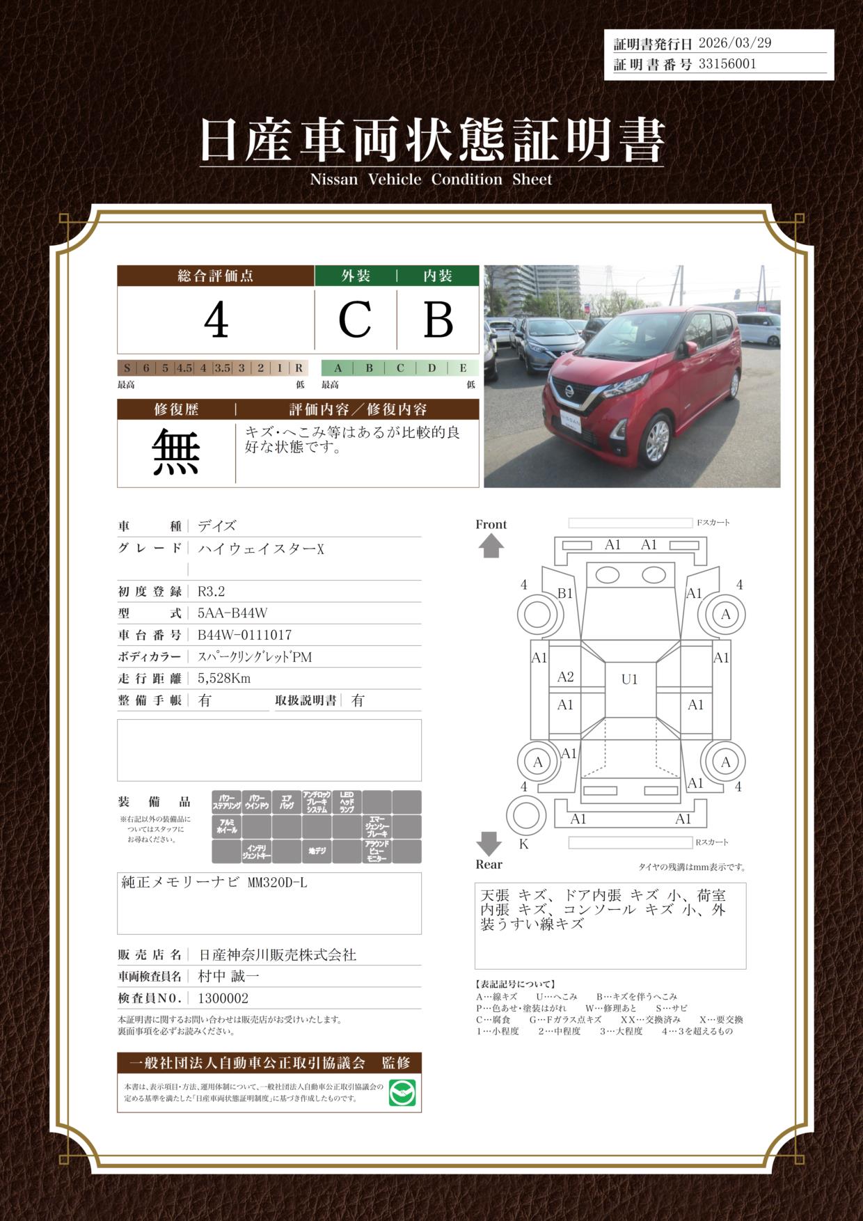 こちらのクルマは 「日産認定中古車」。 だから、4つの安心をお約束。