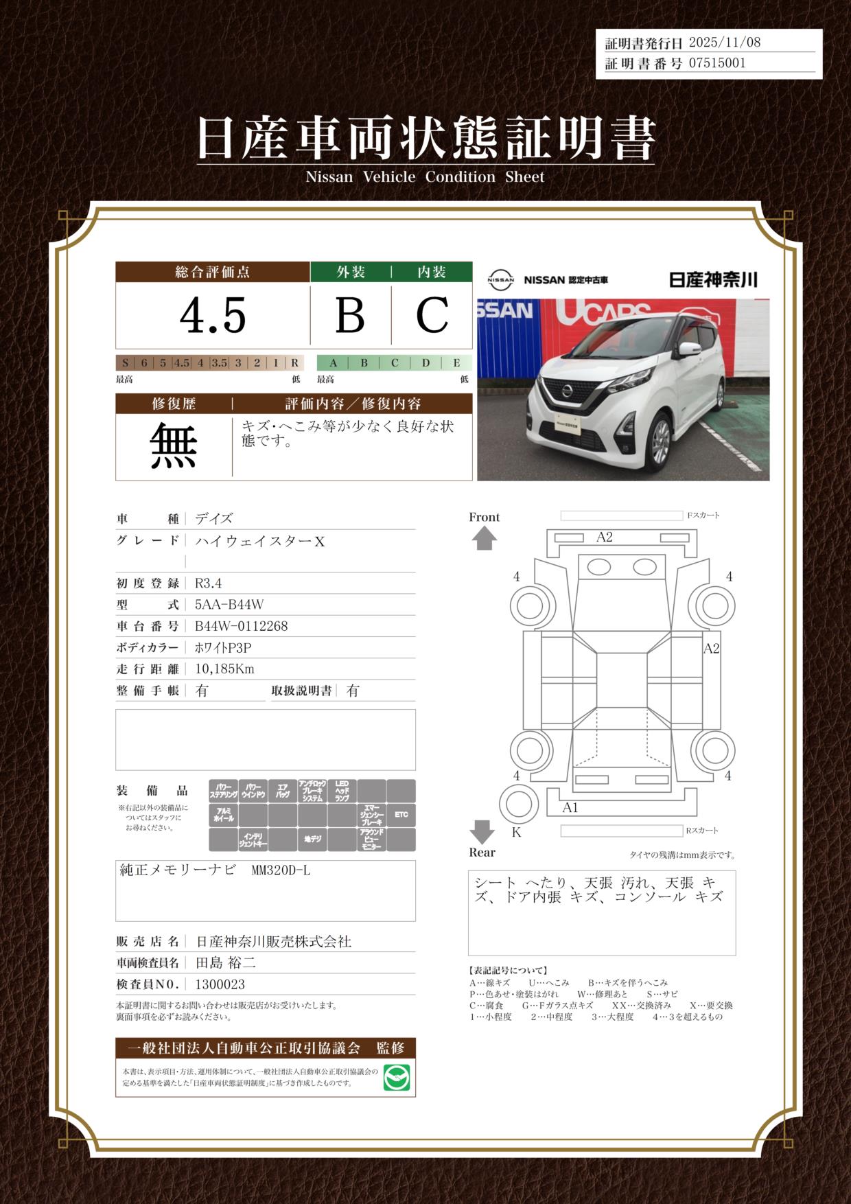 デイズ 660cc 660 X 純正前後ドラレコ アラウンドビューモニタ
