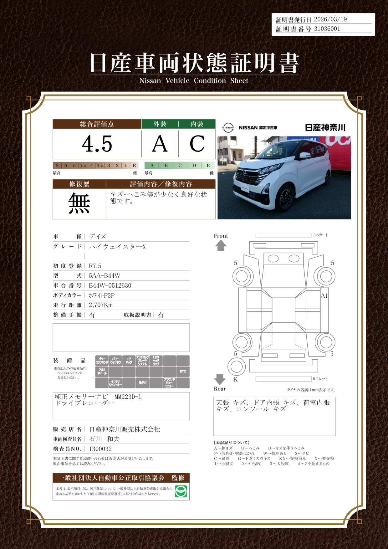「車両状態証明書」は、査定協会監修のプロの検査員が公正かつ確かな基準で検査した”安心の証”です。