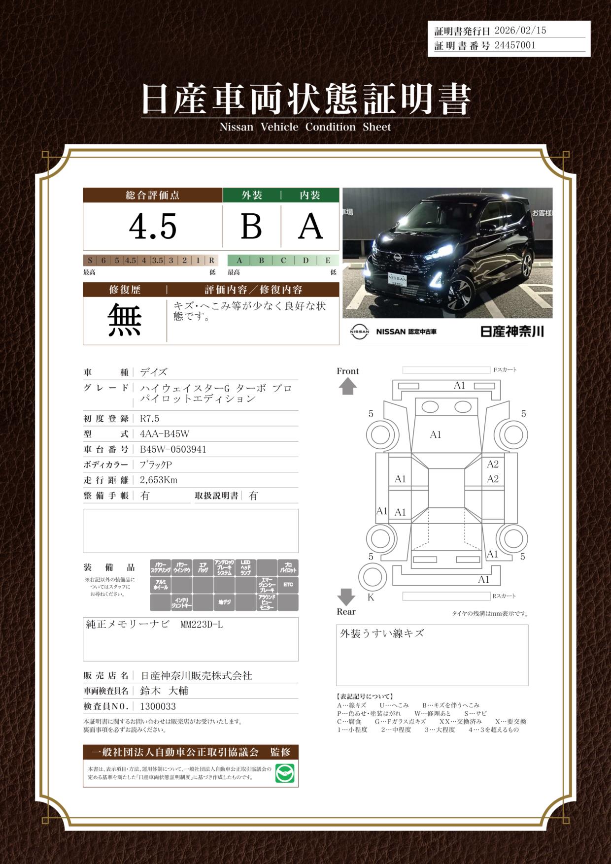 【禁煙車として使用 日産神奈川元社有車】 日本全国登録→ご納車、承ります。メーカー特別保証(初度登録から5年/10万キロ)継承。全国の日産サービス工場でメンテナンス可能です。