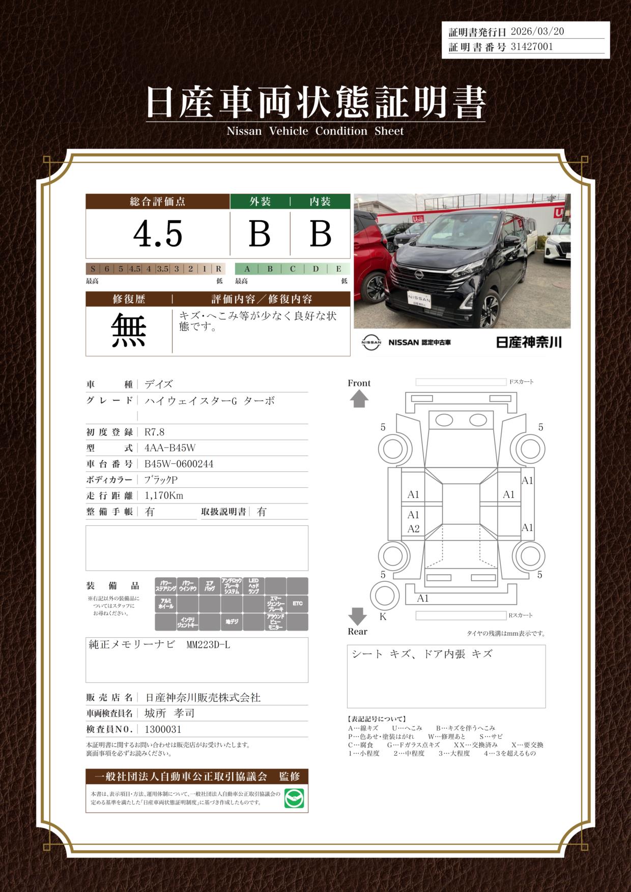 「車両状態証明書」は、査定協会監修のプロの検査員が公正かつ確かな基準で検査した”安心の証”です。