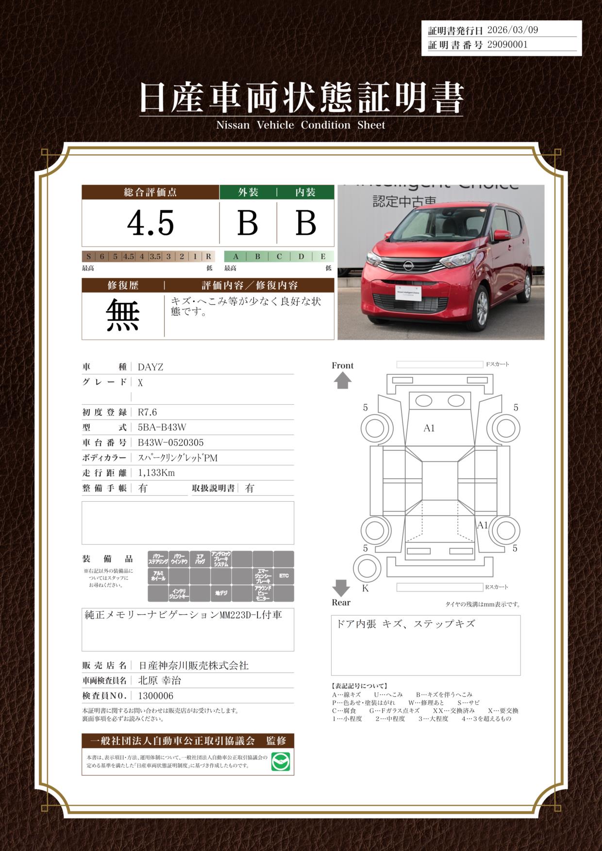 「車両状態証明書」は、査定協会監修のプロの検査員が公正かつ確かな基準で検査した”安心の証”です。