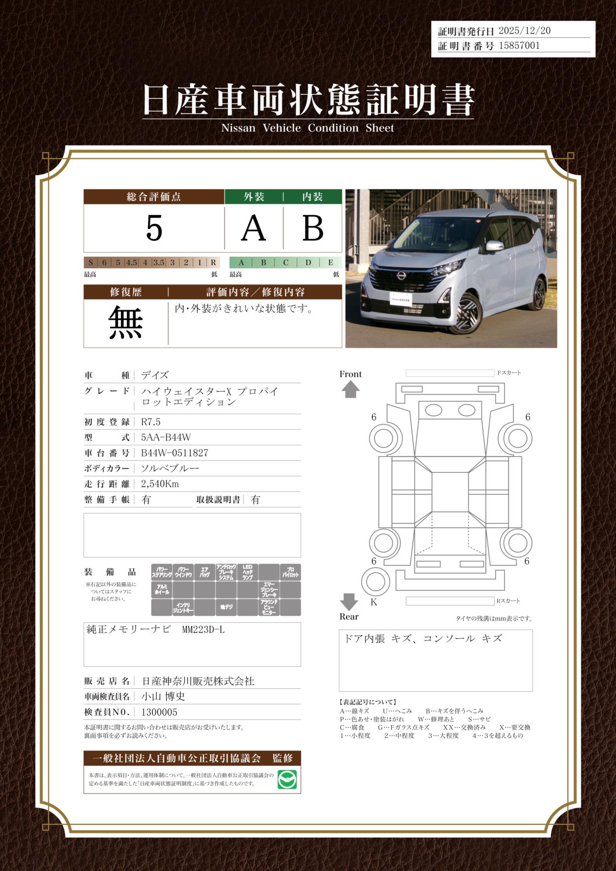 現状括弧書き内の年月まで車検有効期限が残っていますが、ご成約時に新しく車検を取り直します。なお取り直しの費用は車両価格に含まれています。