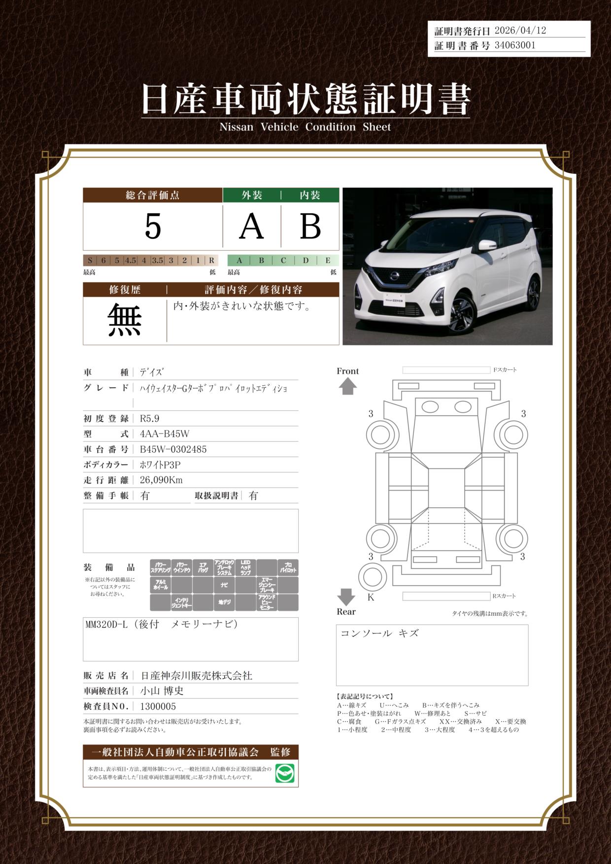 「車両状態証明書」は、査定協会監修のプロの検査員が公正かつ確かな基準で検査した”安心の証”です。