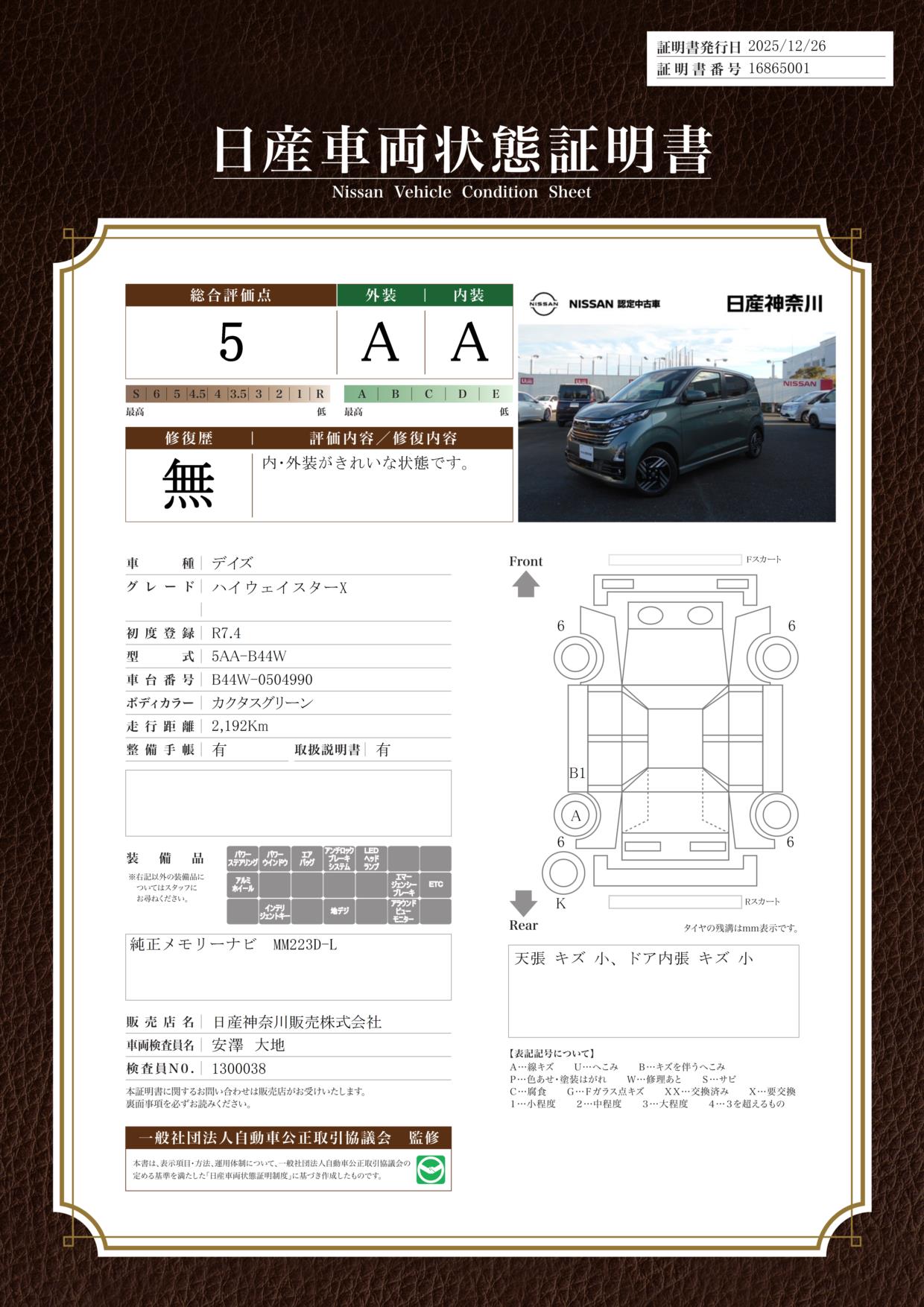 現状括弧書き内の年月まで車検有効期限が残っていますが、ご成約時に新しく車検を取り直します。なお取り直しの費用は車両価格に含まれています。
