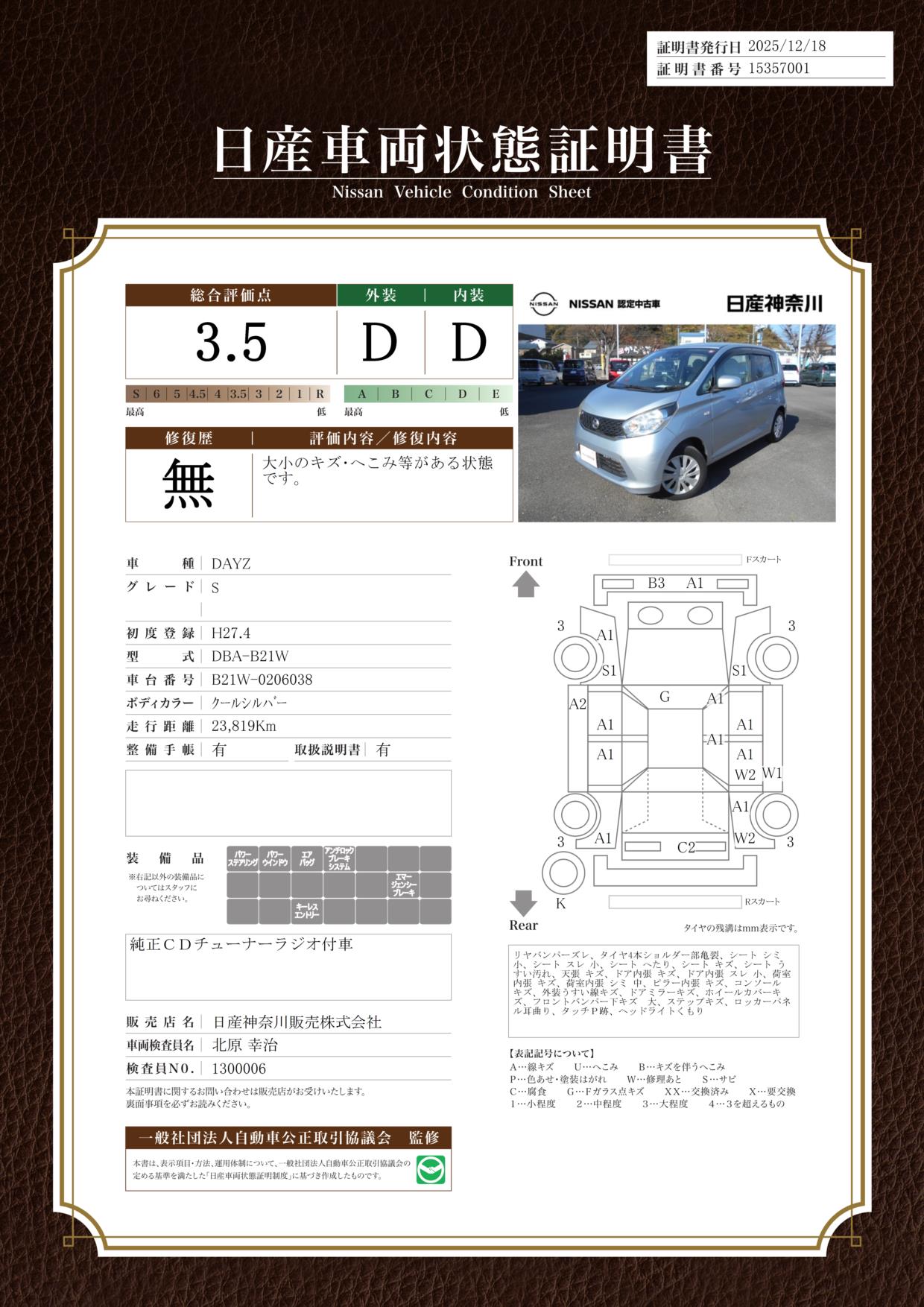 純正フロアマット・エマブレ・VDC・ハロゲンライト・アイドリングストップ1年間走行距離無制限の日産「ワイド保証」付きです。点検整備は全国約2300か所の日産整備工場でサポート。