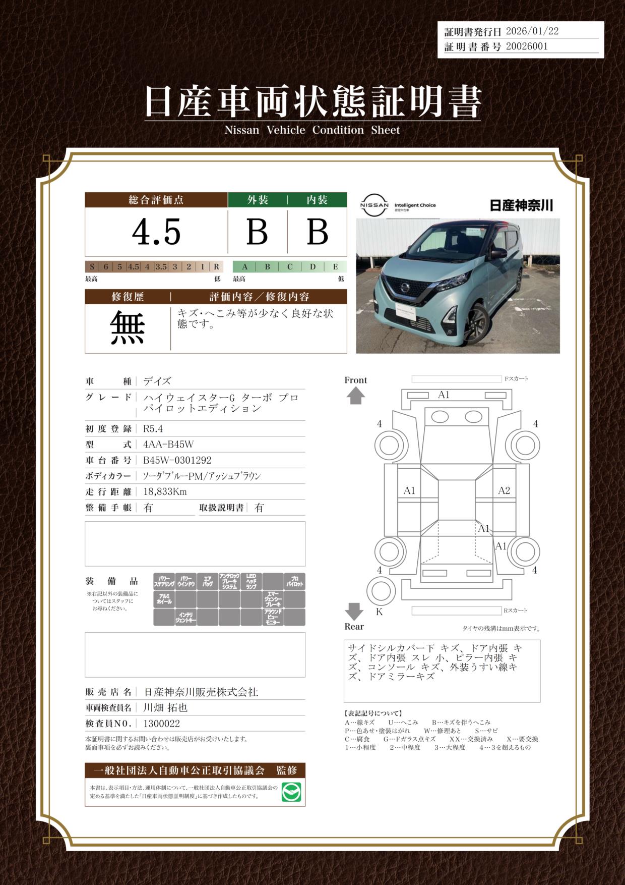 現状括弧書き内の年月まで車検有効期限が残っていますが、ご成約時に新しく車検を取り直します。なお取り直しの費用は車両価格に含まれています。