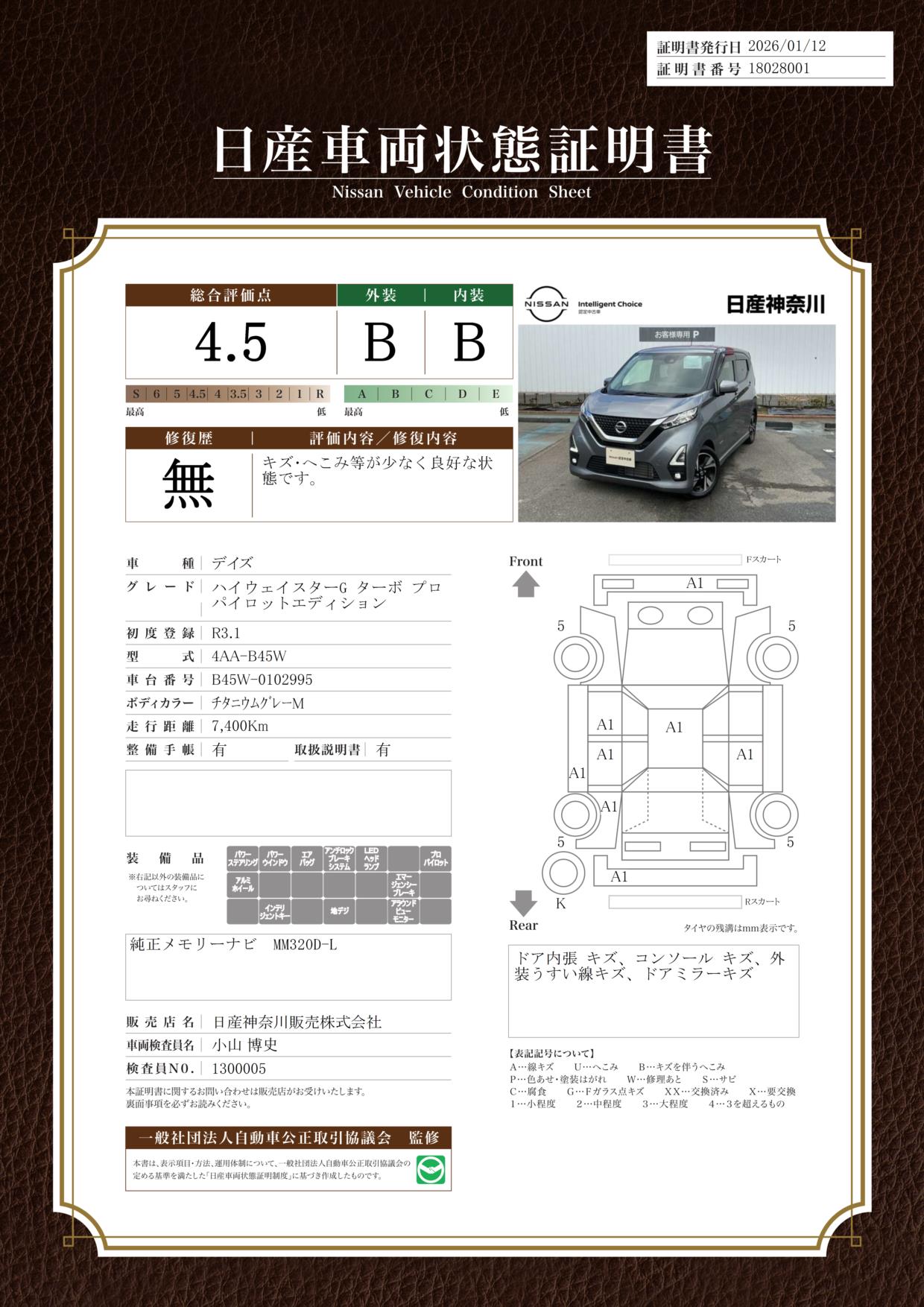 現状括弧書き内の年月まで車検有効期限が残っていますが、ご成約時に新しく車検を取り直します。なお取り直しの費用は車両価格に含まれています。
