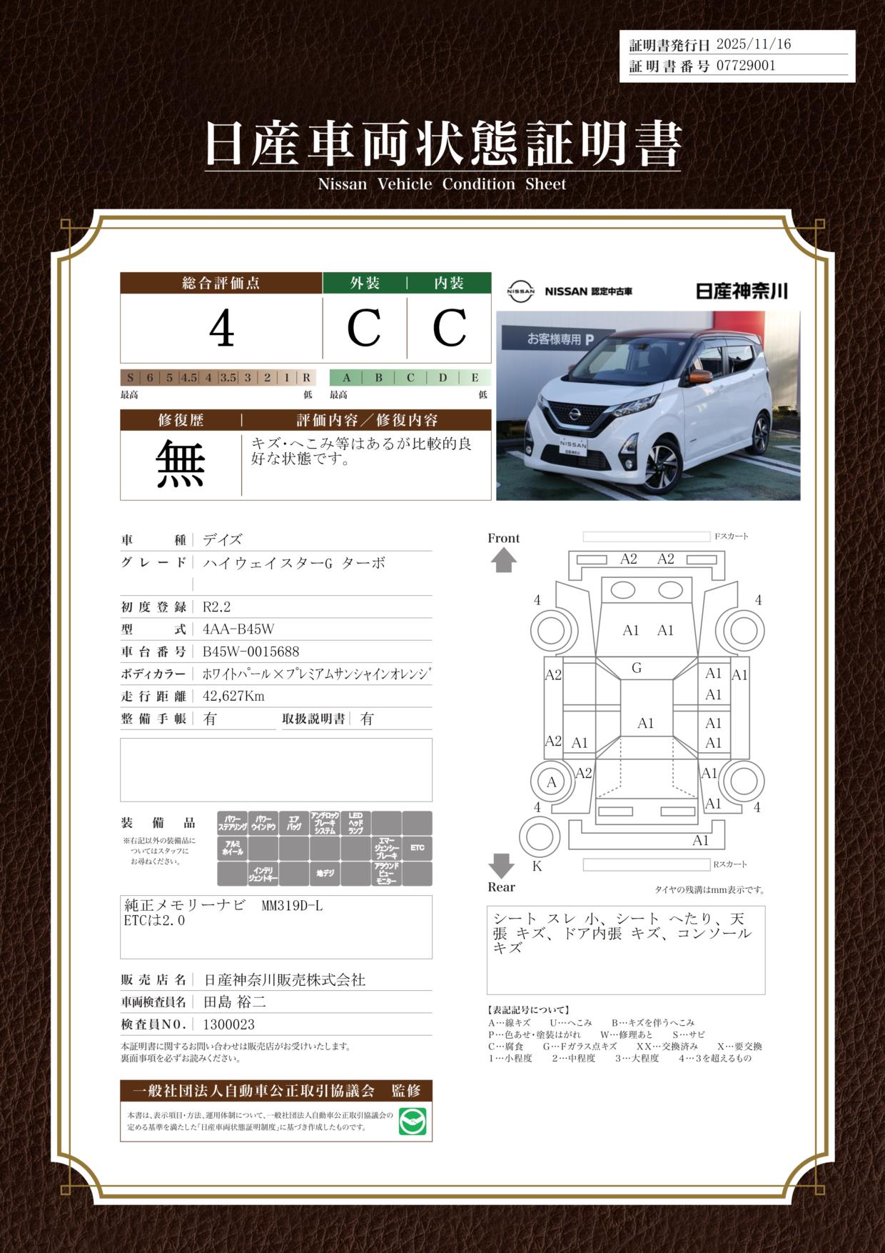 660 ハイウェイスターGターボ ドライブレコーダー・日産メモリーナビ・ア