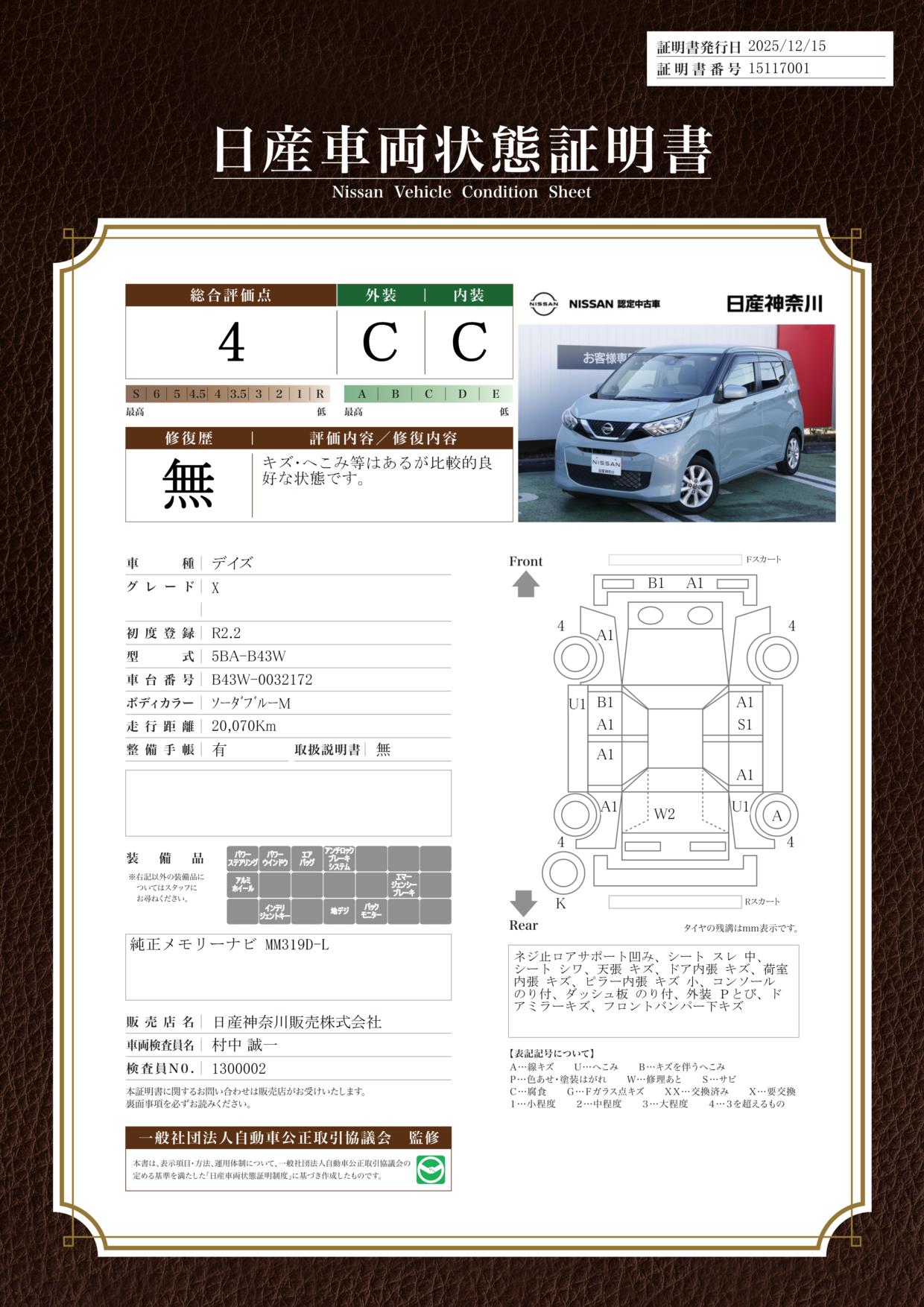 デイズ 660cc 660 X 全周囲カメラ ETC2.0 前ドラレコ