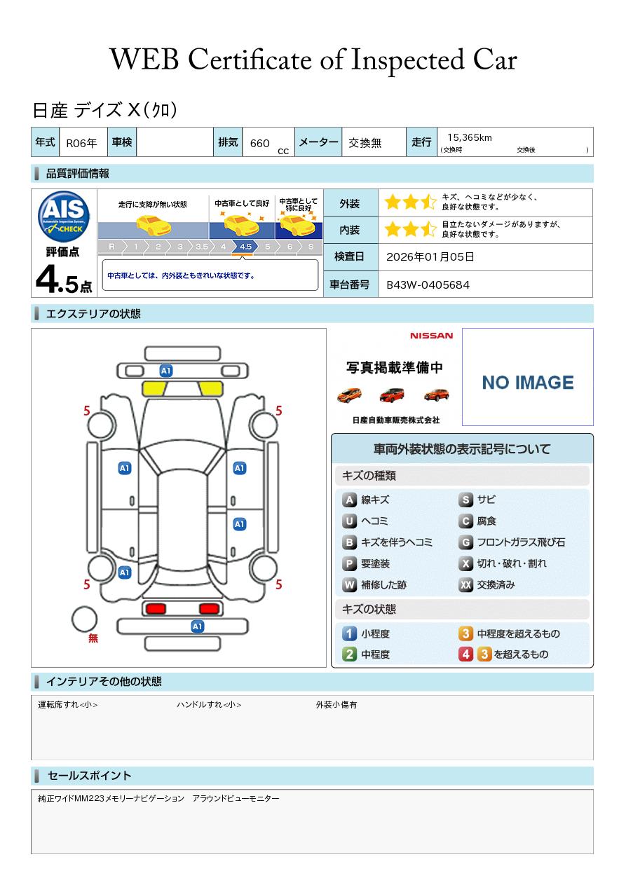 デイズ 660cc 660 X メモリーナビ・AVM・LEDライト