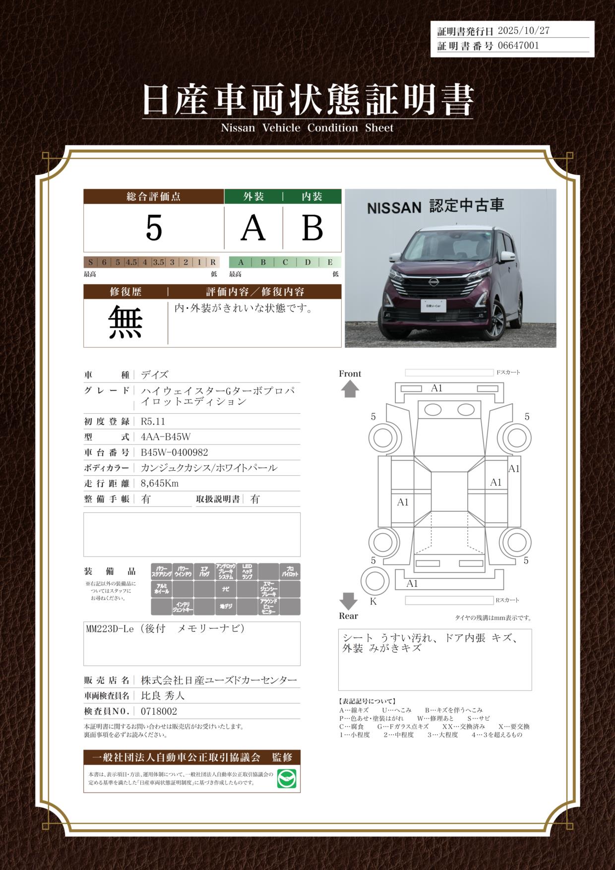 メモリーナビMM223D-Le・地デジ・アラウンドモニター(全周囲カメラ)・プロパイロット・SOSコール・ドラレコ・LEDヘッドライト・ハイビームアシスト・日産中古車ワイド保証2年付