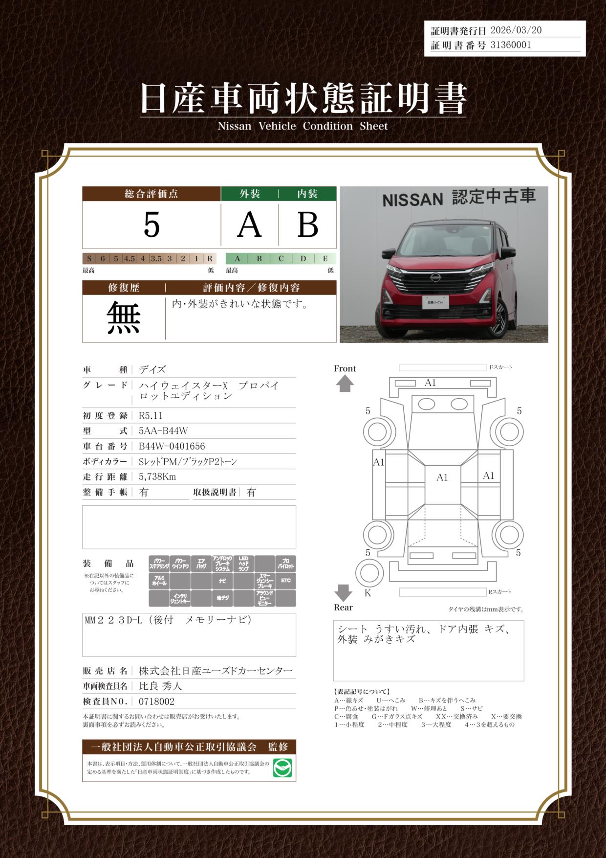 「車両状態証明書」は、査定協会監修のプロの検査員が公正かつ確かな基準で検査した”安心の証”です。