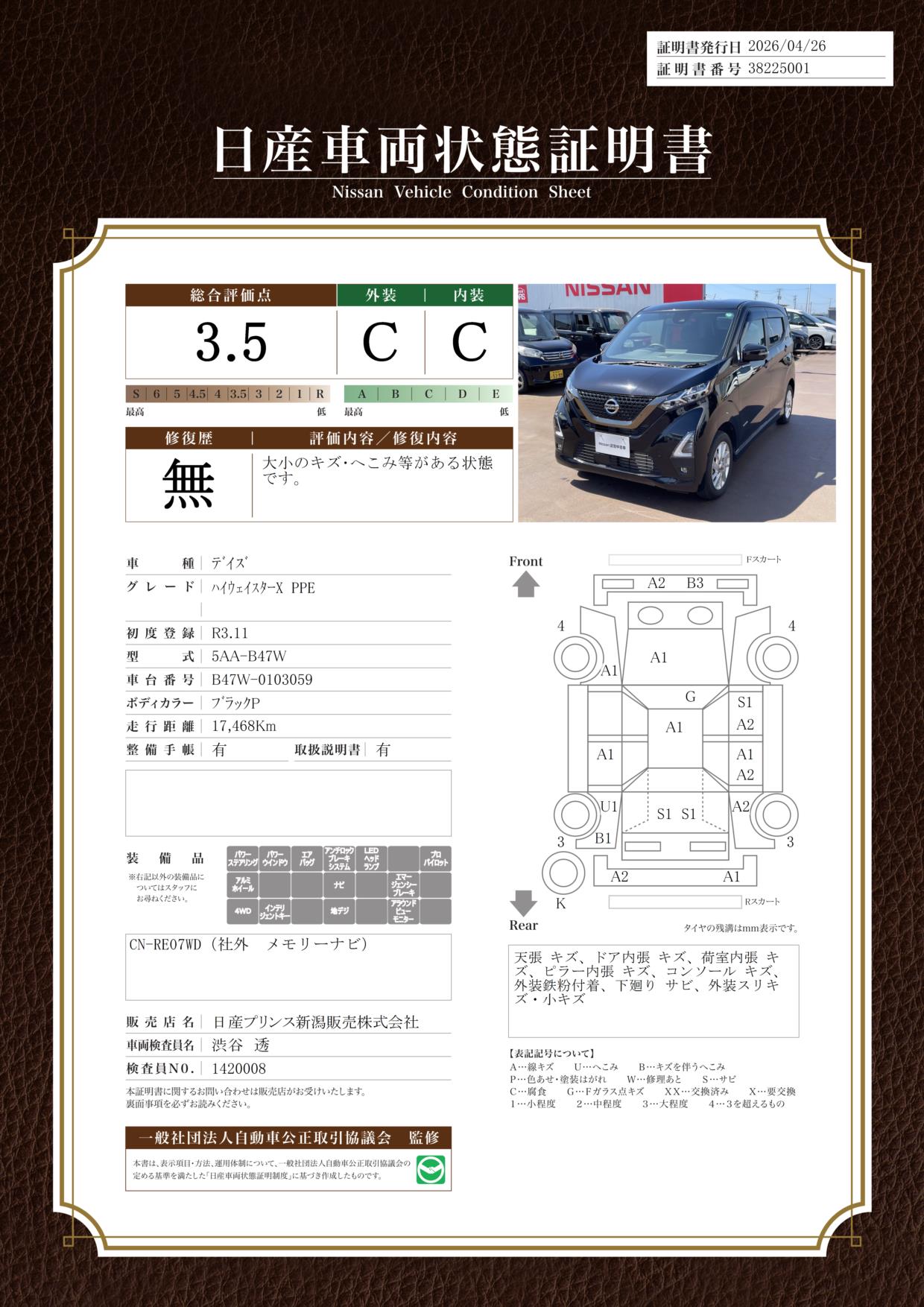 日産車両状態証明