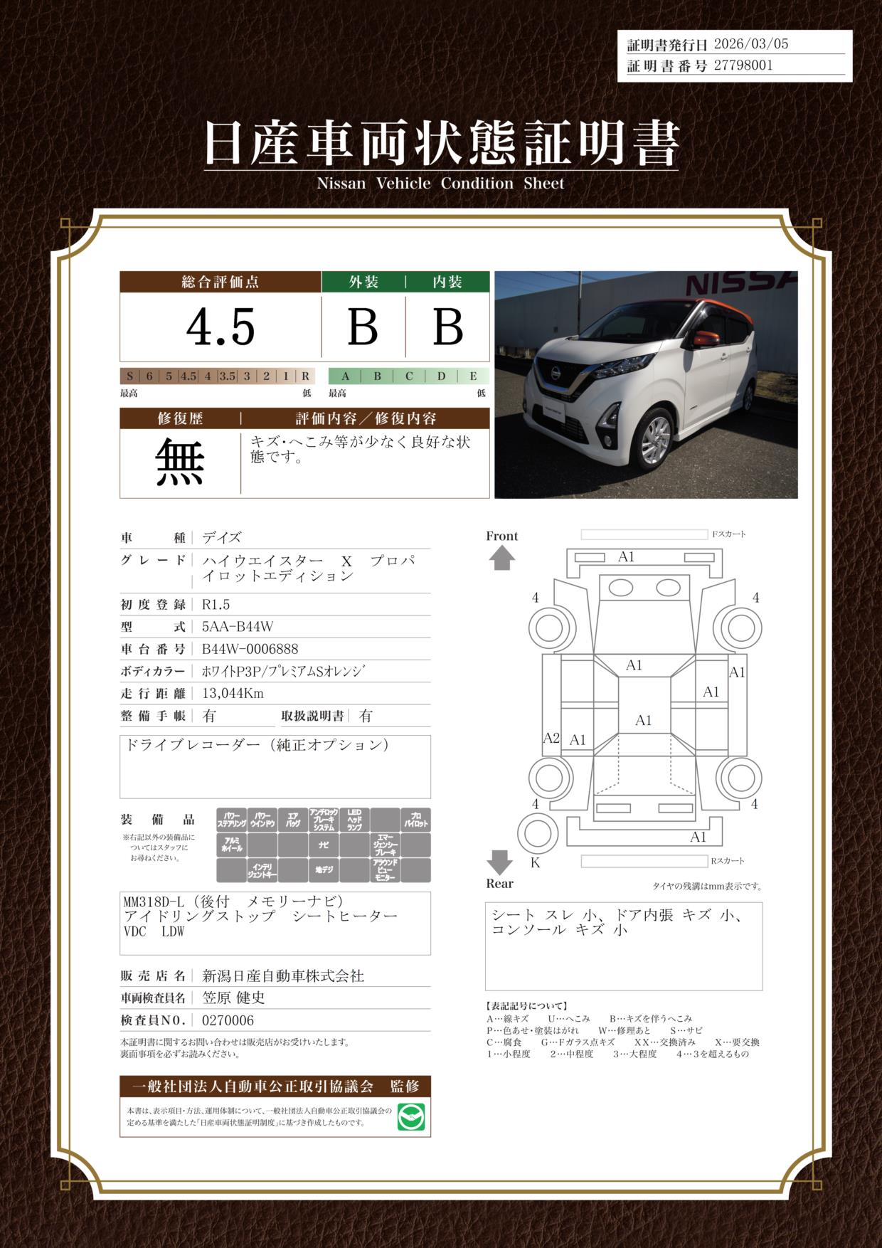 現状括弧書き内の年月まで車検有効期限が残っていますが、ご成約時に新しく車検を取り直します。なお取り直しの費用は車両価格に含まれています。