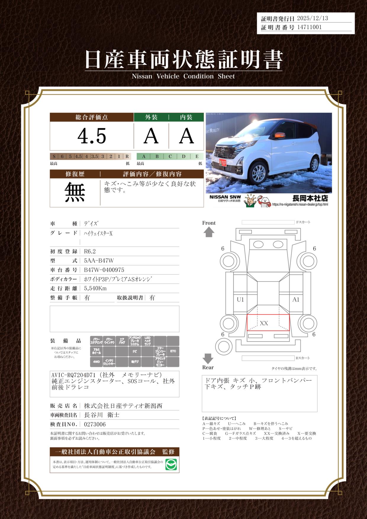 ☆納車後1ヶ月または1000km走行時の無料点検付き☆長岡本社店にて展示中☆任せて安心!ディーラー保証!事前チェックと納車前点検整備もバッチリです!